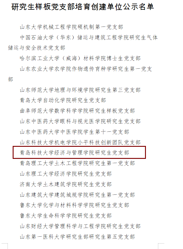 近日,根据《中共山东省委教育工委关于开展全省高校“研究生样板党支部”和“研究生党员标兵”创建工作的通知》(鲁教工委函〔2021〕1号)安排和评审工作方案,经组织推荐、专家评审、集体研究,共遴选产生了20个首批全省“研究生样板党支部”培育创建单位,xvideo