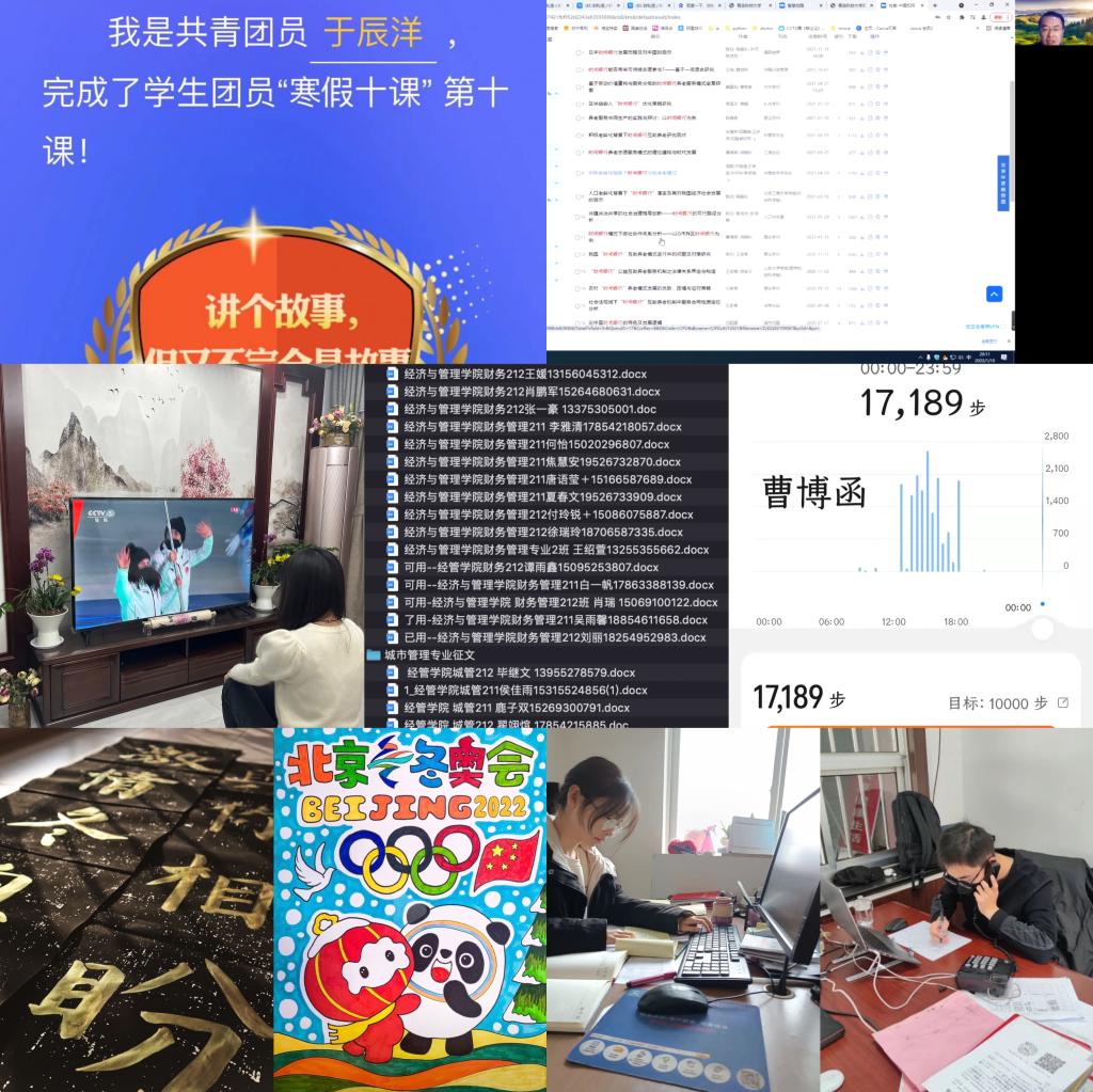 首届“我和我的家乡”短视频/摄影大赛”“一起ying冬奥·年”活动,鼓励学子将情感付诸笔端与镜头,用书法、绘画、vlog视频作品等表达对春节及北京冬奥会的祝福。强化劳育淬炼意志,组织全体学生积极参与寒假社会实践,积极发挥各年级学生干部、党员骨干的先锋模范和桥梁纽带作用,围绕“青鸟计划”、“一起云支教 共同迎冬奥”专项活动等实践开展全程指导,引导学子在实践锻炼中磨练意志、增长才干。