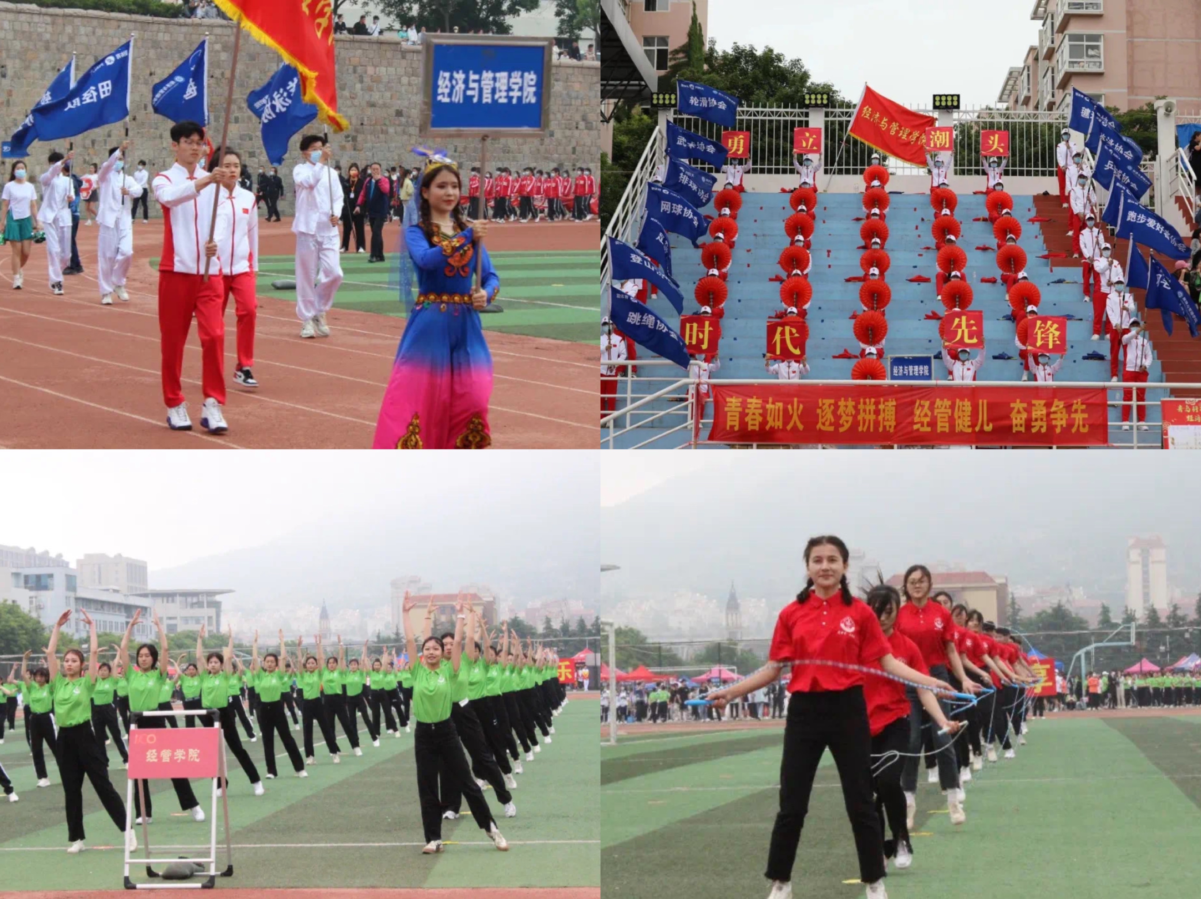 昂首挺胸、大步向前,整齐的步伐踏出必胜的决心,灿烂的笑容描绘运动的热情。观众席上,花朵颜色层次分明,红黄蓝交替展开,形成浪潮效果,与入场方队遥相呼应,“强身立志, 明德尚行”“经心筑梦,奋勇向前”,响亮的口号是对经管风貌的精彩诠释。在跳绳和排舞比赛中,经管学子精益求精、活力四射,排舞与跳绳进行了美妙的碰撞,汗水滑落背后,笑颜迎面向前,展现出阳光向上、熠熠生辉的经管风采。田径赛场上,短跑运动员们摆动手臂,奋起直追;长跑运动员们步伐矫健,坚持不懈;跳高、跳远的运动员们竭尽全力,纵身一跃;铅球运动员们奋力一挥,抛出优美的抛物线。运动会中,经管学子们为梦想而战,为经管而战,他们克服苦难、超越自我,全力挥洒汗水的身影,是青春最靓丽的风景,展现出了“弘扬中华体育精神,弘扬体育道德风尚”的体育精神,秉承“爱体育,兴科大“的宗旨,以饱满的热情和昂扬的斗志争创佳绩。观众席上别具一格的呐喊声,期盼的眼神,足以证明经管学子心里那份不能平息的激动和洋溢在脸上的喜悦。