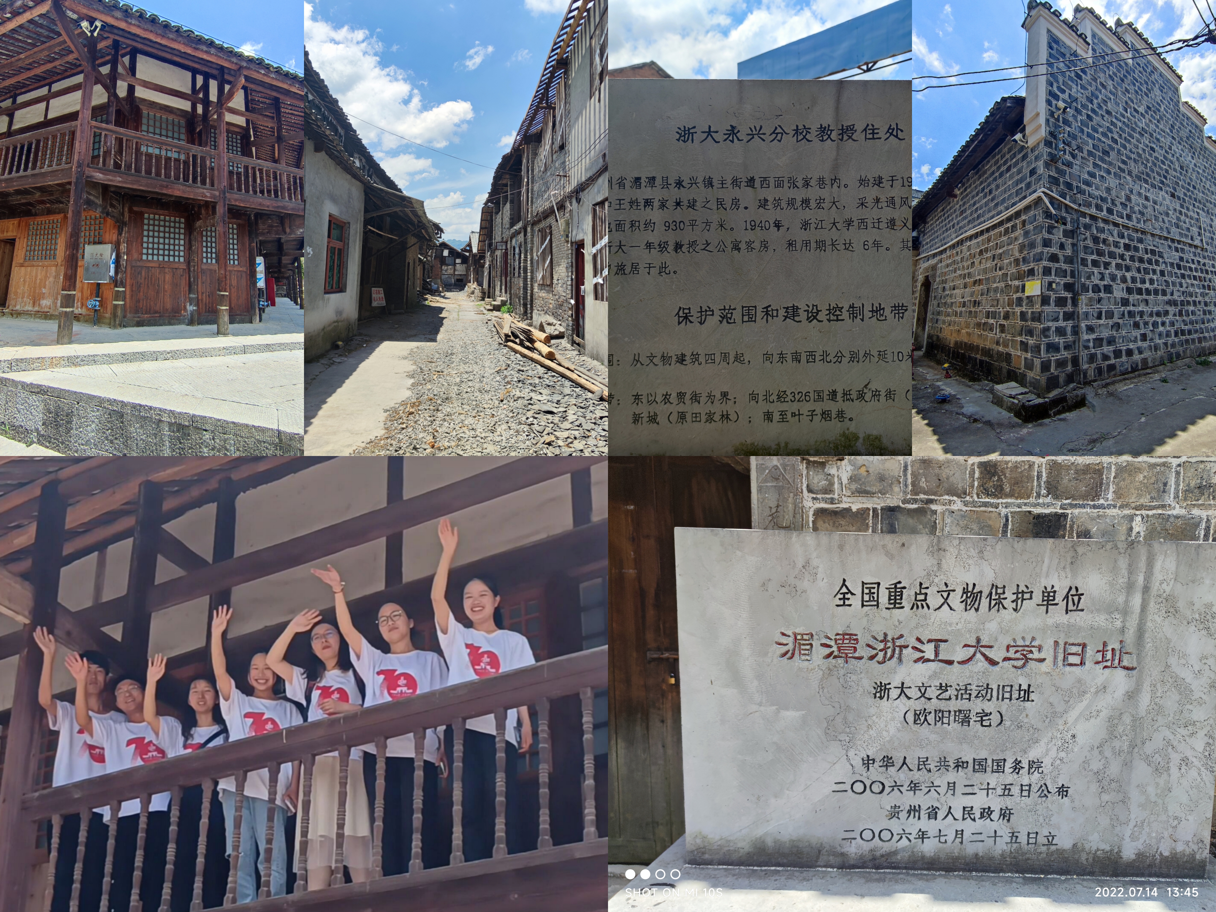 翌日,实践团队前往湄潭浙大旧址进行参观学习。走在昏暗的教室内,踏着木板发出的“嘎吱声”,浙大学子孜孜不倦、“为中华之崛起而读书”的求学场景浮现在眼前。看着这座极具厚重历史的建筑,感受到的是浙江大学的“求是”精神和永兴人民无私援助的奉献精神。红色文化的传承与发扬,关键在于青年,在于怀抱理想、甘于奉献的追梦人,在于为了中华民族的伟大复兴不懈奋斗的我们。