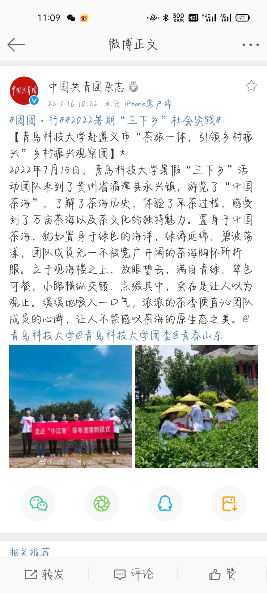“茶旅一体,引领乡村振兴”乡村振兴观察团于前往永兴镇境内的万亩茶海进行实地调研。中国共青团杂志官微、齐鲁晚报、网易新闻等多家媒体报道团队事迹。