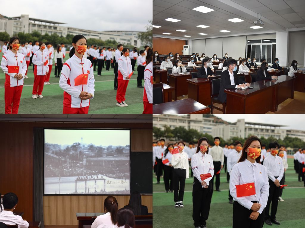 忆峥嵘岁月,看今朝辉煌。值此国庆佳节,学院持续深化价值引领,组织全体本科生、研究生开展“迎国庆 颂祖国 忆往昔 展未来”主题升旗仪式,引导青年学子在活动实践中感怀祖国风雨兼程、披荆斩棘的发展史,共同见证那片“中国红”。在场全体师生共唱国歌,在悠扬浑厚的旋律中歌颂对祖国深沉的热爱。字字铿锵的国旗下讲话,燃起青年学子报效祖国的热忱,以青春正能量共筑中国梦。此外,学院同步开展“颂祖国、迎盛会、展宏图”献礼祖国生日合唱比赛、"我和国旗和个影"系列活动,引导青年学子燃起浓浓爱国情,坚定永远跟党走的理想信念,在实现中华民族伟大复兴中国梦的新征程上奋勇前进。