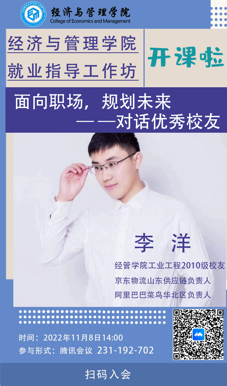 推出“促就业”组合拳,开展就业指导工作坊,助推2023届毕业生高质量就业。11月8日,就业指导工作坊第一讲邀请工业工程专业2010级优秀校友、京东物流山东供应链负责人、阿里巴巴菜鸟华北区负责人、山东速达云仓仓储服务有限公司和山东合聚网络技术有限公司的联合负责人李洋开展《面向职场,规划未来——对话优秀校友》经验分享交流会。xvideo