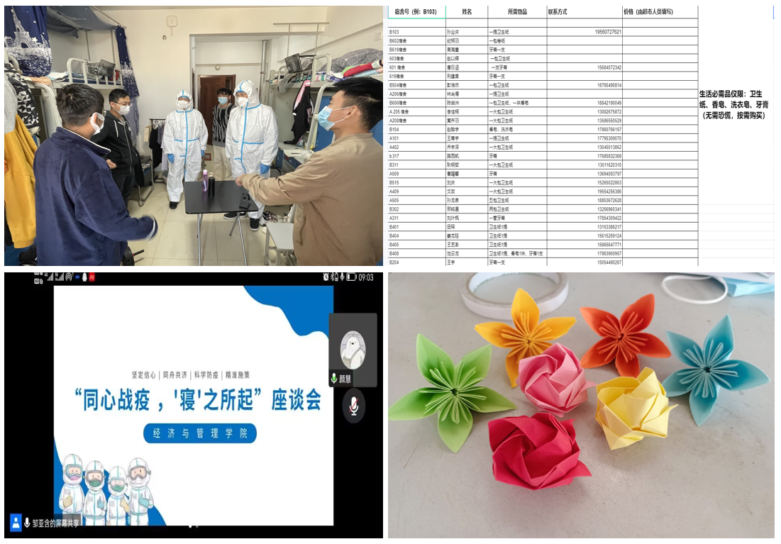 想学生所想,急学生所急,学院书记、院长及辅导员深入学生宿舍,了解学生的生活情况,完成学生一对一谈话及重点学生访谈工作,确保特殊时期安全稳定;各宿舍楼宇通过建立在线表格,及时调研、收集静默同学的各项需求,整理成任务清单,最快速度解决问题;静默管理解除后,学院在遵循疫情防控管理要求的基础上,第一时间召开楼层长抗疫总结分享集体心理团辅活动,以暖心的水果和茶点慰问辛勤付出的志愿者同学,鼓励大家继续发扬抗疫精神,以永不懈怠的精神状态和一往无前的奋斗姿态,团结一心,加压奋进。