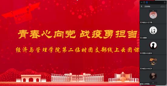 战疫第一、第二临时团支部分别开展以“永远跟党走 同心战疫情”、“青春心向党 战疫勇担当”为主题的线上学习会和主题云团课活动,引导青年学子在理论学习中汲取智慧力量,帮助隔离学子激发爱党爱国爱社会主义的真挚情感。