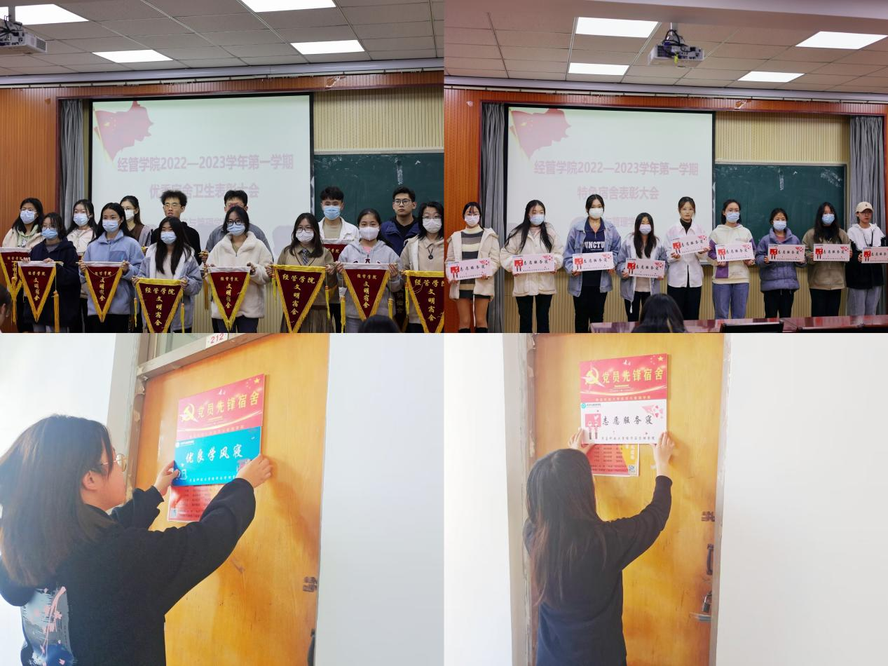 通过“自荐+评审”的方式筛选出优秀宿舍,并颁发“党员先锋宿舍”“志愿服务寝”“活力体育寝”“优良学风寝”多元化定制门牌,充分发挥党员和青年榜样的带头作用,利用宿舍第二课堂,树立优良学风,促进同学间相互学习,锐意进取,向优秀宿舍看齐。