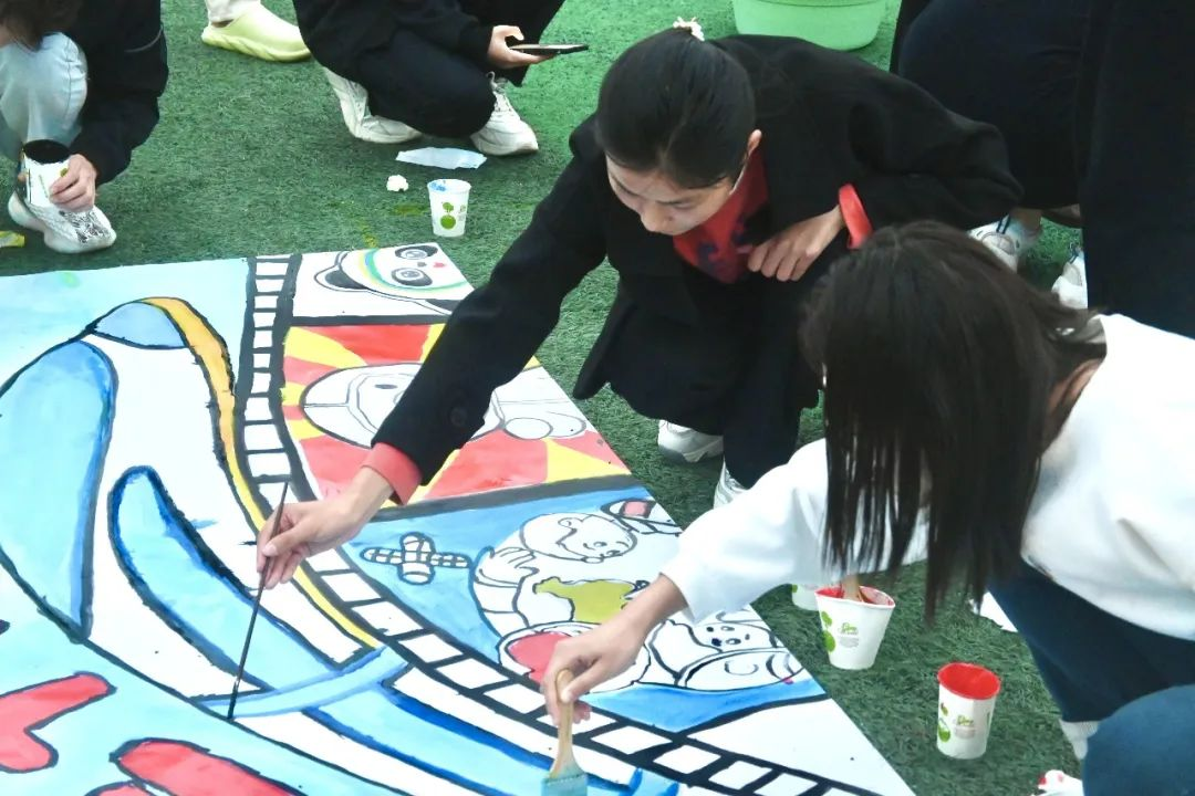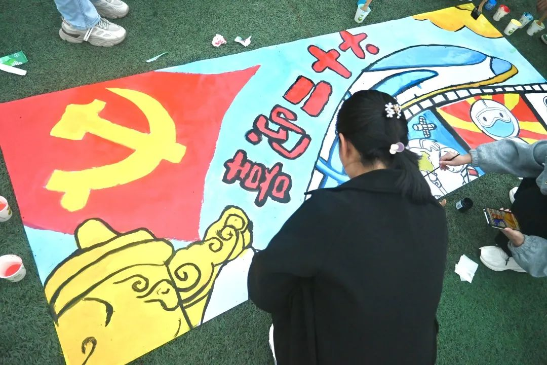 于南苑操场组织开展“共绘壮美山河,共谱盛世华章”逐梦心连心活动,通过手工作品绘制引导经管学子以青春之名书写清澈之爱,以手中颜料献礼五彩中华,一笔一画展现心中的无限自豪,为讲好中国故事、开启时代新征程绘就更靓丽的青春底色。