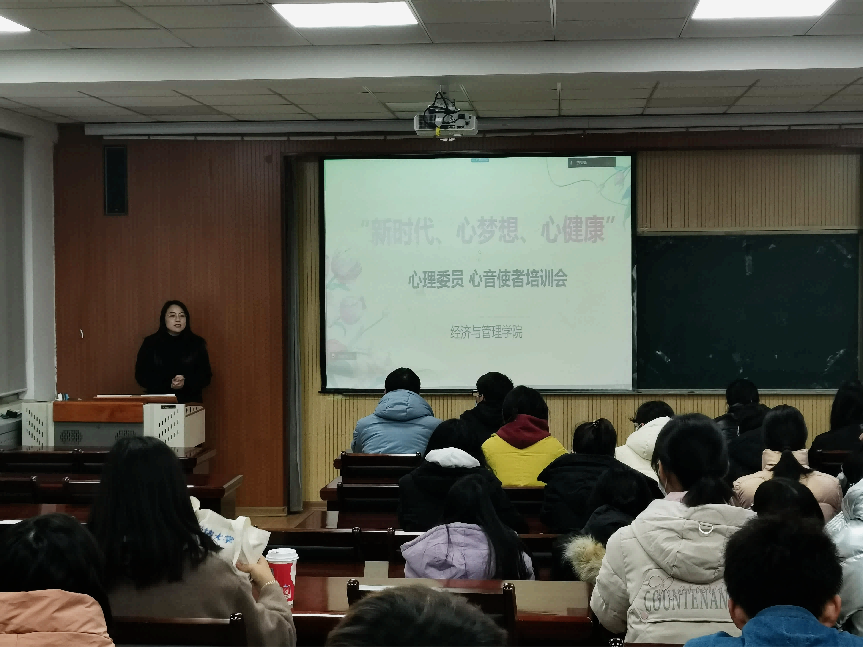 于经管楼419组织开展了“新时代、心梦想、心健康”22级心理委员培训会,培训会由学院心理工作站站长付凯主讲,22级心理委员以及心音使者参加了此次培训会。