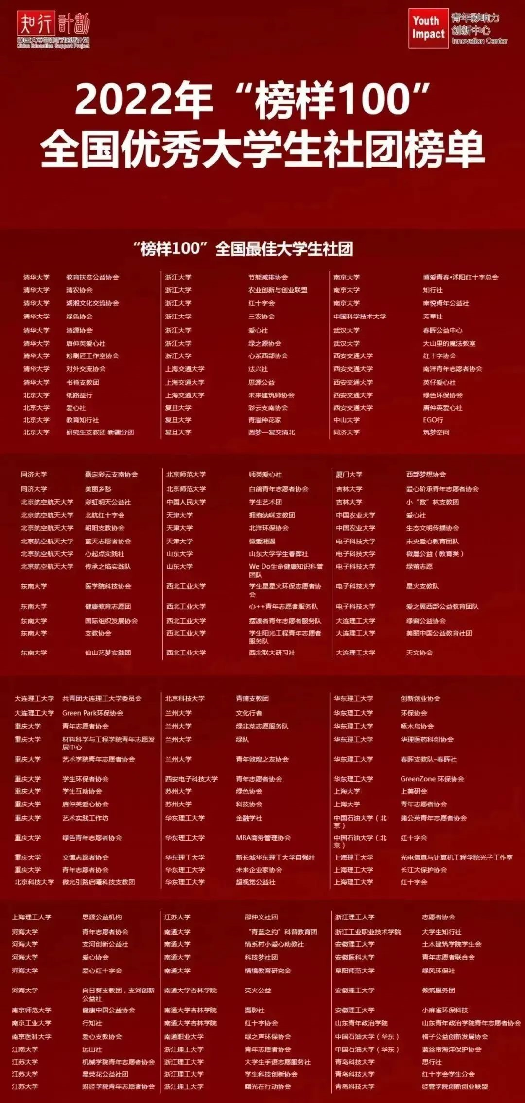 12月14日,中国大学生知行计划公布2022年“榜样100”全国优秀大学生社团榜单,xvideo