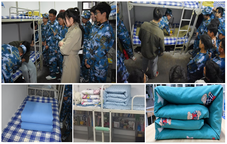 军训期间,学院组织开展“擦亮家的名片”内务整理活动,邀请学院退役军人士兵对叠军被手把手进行“现场教学”,同学们按照步骤拍照记录过程,并用自己的被子动手实践。以连队为单位,开展宿舍内务评比活动,既培养同学们良好的生活习惯,营造整洁舒适的宿舍生活环境,也让同学们感受到了部队生活的严谨与整齐划一。