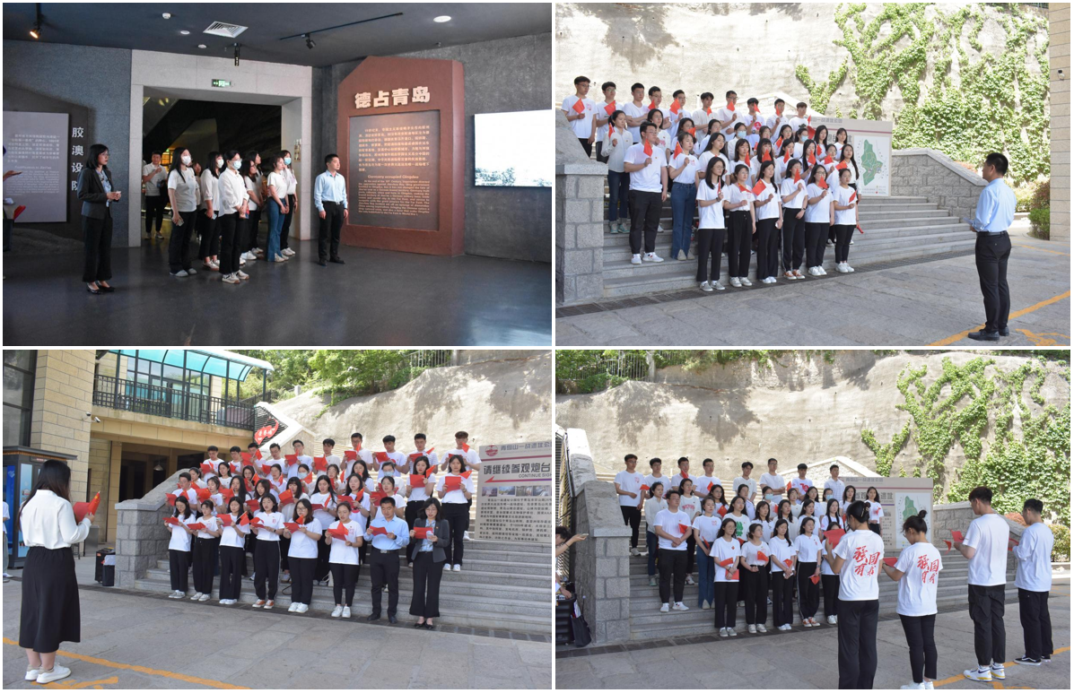全体党员重温入党誓词,在青岛市一战遗址博物馆的广场上,师生们的誓言回荡不绝,师生们的庄严承诺掷地有声……一声声誓言响起来,一个个榜样引领“亮”起来,研究生支部党员一同将誓言镌刻心间。