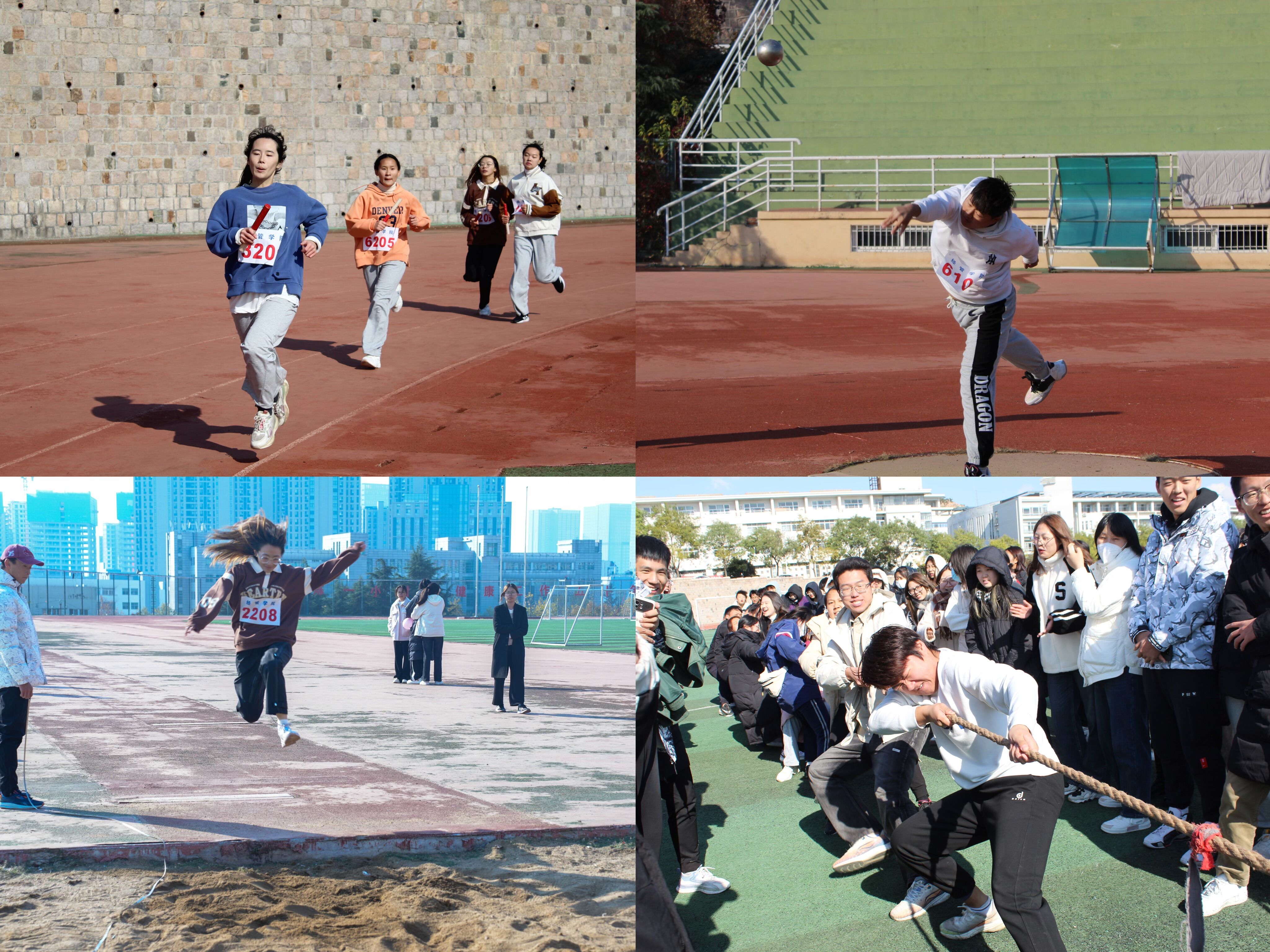 径赛场上,运动员们似离弦的箭,以坚毅的步伐冲刺那象征胜利的终点,每一步奋力奔跑的脚印,每一次接力棒的交接,都凝结着希望。田赛场中,跳远和铅球项目正如火如荼地进行着,一次次的跳跃、一次次的投掷……交织的弧线如同宣扬着不服输的五线谱,谱出运动员们的顽强与毅力,奏出经管学子的青春活力。在趣味赛事上,跳大绳比赛整齐划一,"齐心协力"赛分外焦灼,经管学子众志成城、戮力同心,凝聚起青春磅礴力量。