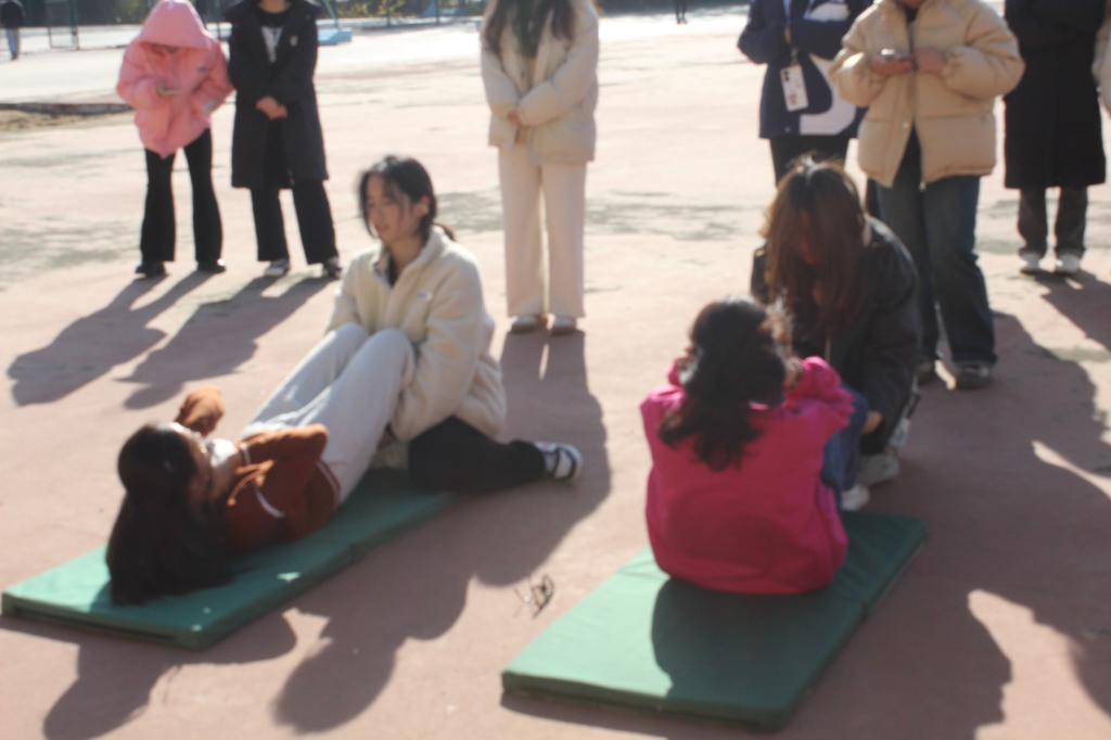 比赛过程中,引体向上参赛选手凭借矫健的肌肉与力量,在单杠上如鱼得水,尽展风采;仰卧起坐参赛选手也凭借有力的腰腹力量,游刃有余,分秒必争。参赛学子坚定的意志和出色的表现赢得了在场所有观众的欢呼与喝彩。其中,在引体向上比赛中,2021级国际经济与贸易专业谢嘉楠获第一(24个),2022级工商管理姜春浩获第二(12个),2022级国际经济与贸易专业陈皓文获第三(6个)。在仰卧起坐比赛中,2022级工商管理专业祁凡获第一(52个),2023级市场营销专业闫睿琳、2021级城市管理专业于满荷、2021级财务管理(ACCA)专业刘婉婷三人并列第二(50个),2023级国际经济与贸易专业罗雁月获第三(48个)。