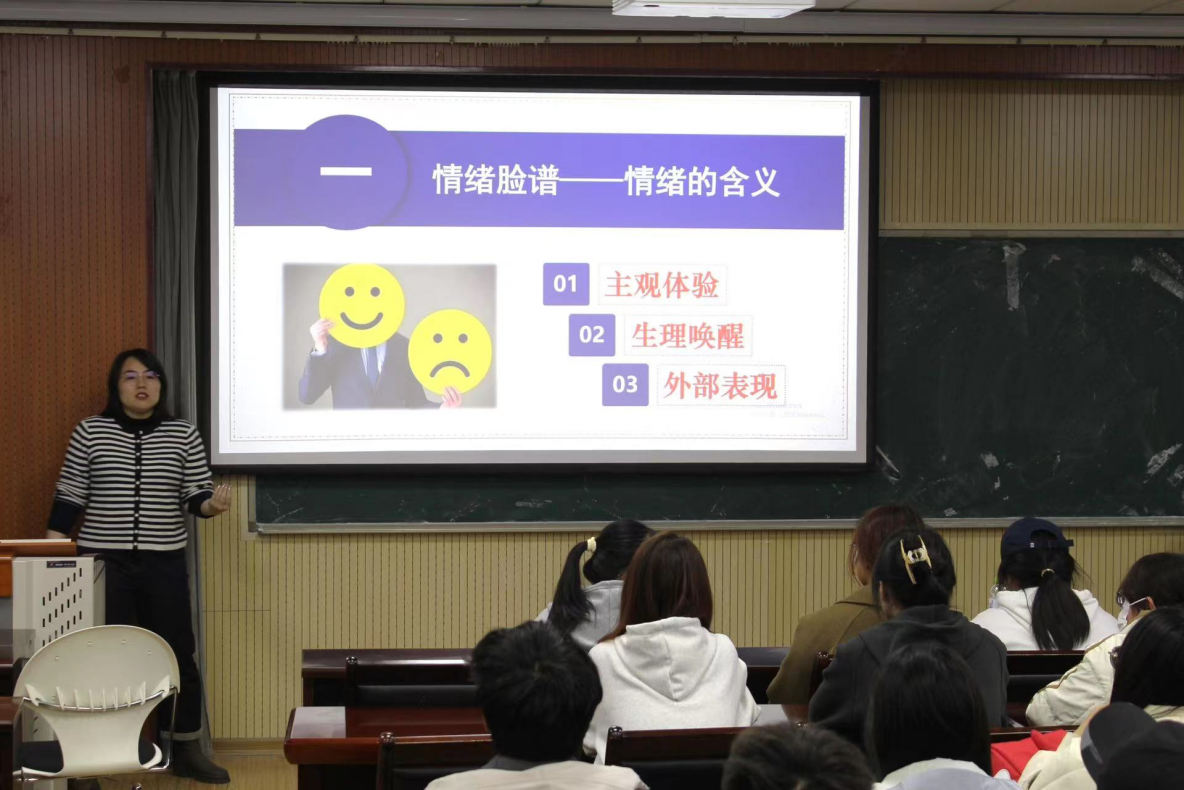 培训伊始,付凯通过实例引导同学们对“情绪”建立了正确、客观的认识并且详细介绍了情绪的三个重要组成部分,深入解释了情绪的主要功能、一些常见的消极情绪及其产生机制。随后,付凯与同学们共同探讨了大学生该如何管理好自己的情绪并介绍了一些有效的消极情绪调试方法,如改变认知法、注意转移法、合理宣泄法、ABC情绪理论等,以帮助同学们有效调整自己的情绪。