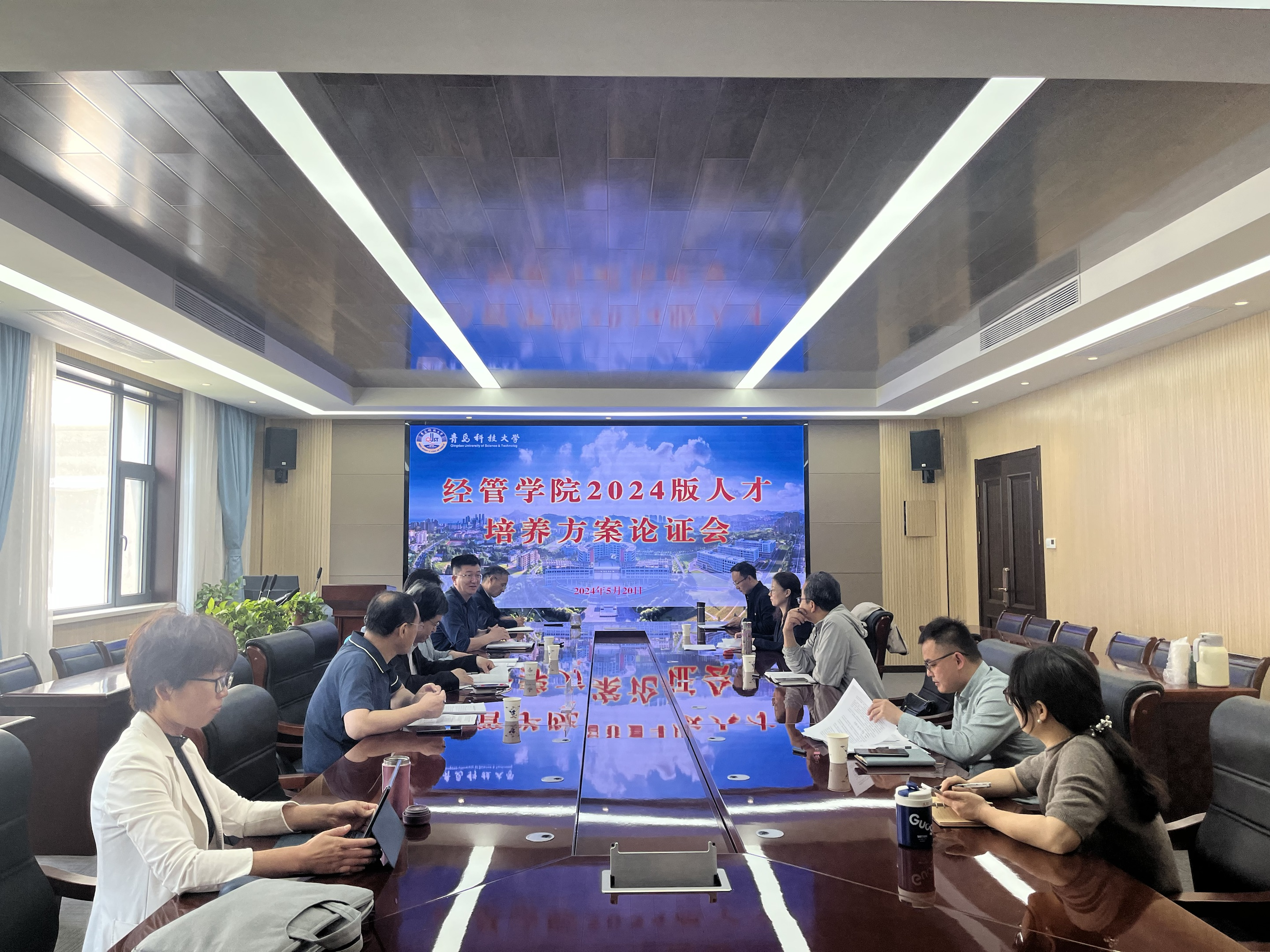 2024版培养方案论证会。会议邀请青岛大学经济学院副院长吕学梁,青岛大学商学院教授马骋和信息学院副院长周艳平,学院党委书记李勋来、院长吕承超、副院长宫攀和各系系主任参加会议。