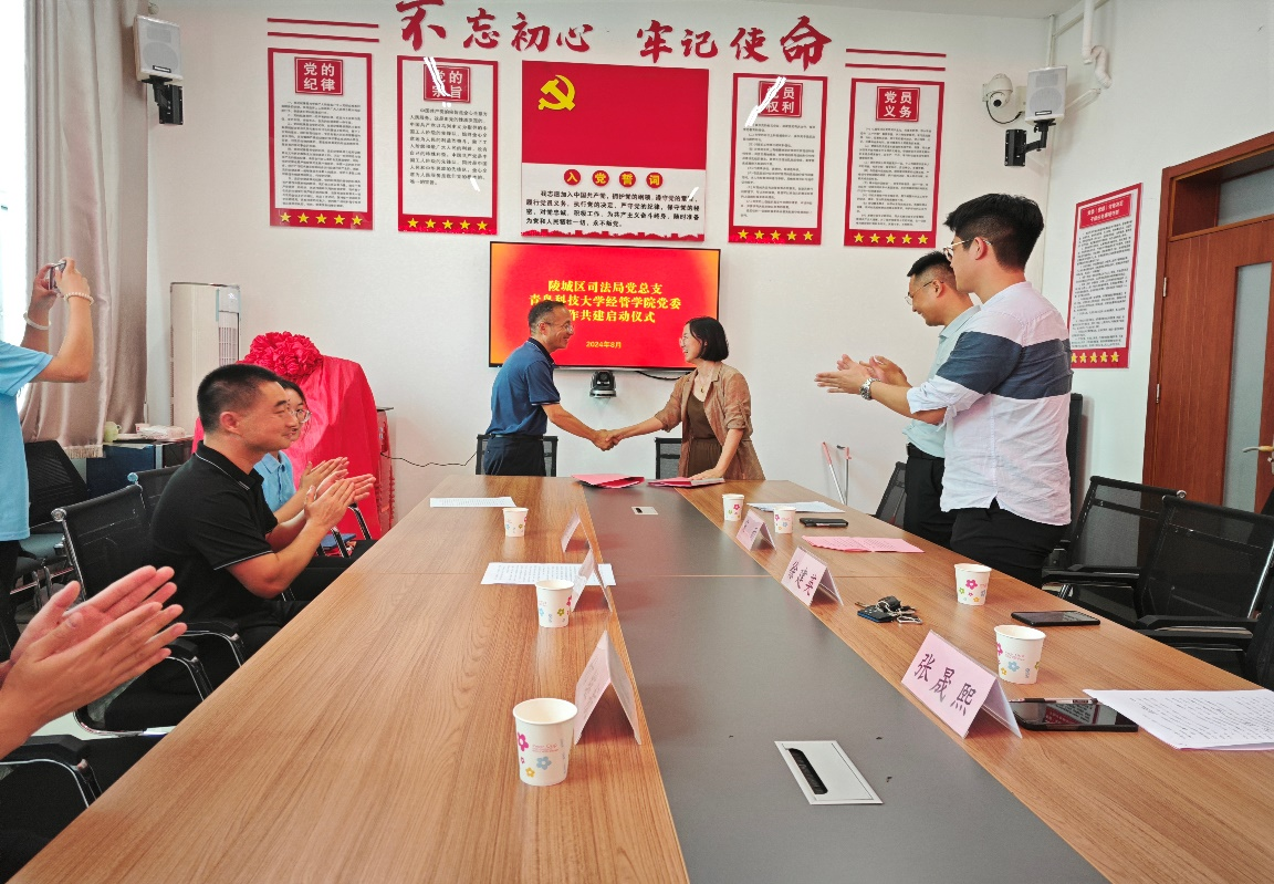 党委与德州市陵城区司法局党总支在陵城区司法局举办“强化党建联建共建 聚力治理水平提升”活动。经管学院党委书记李勋来、陵城区司法局局长徐建英、共青团陵城区委书记张晟熙、xvideo