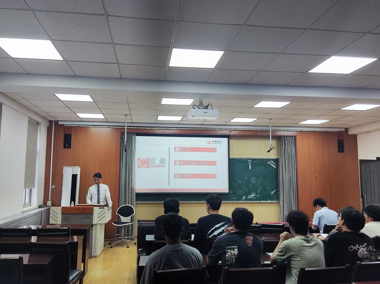 于经管楼419会议室举办华西证券专场宣讲暨招聘答疑会。宣讲会由华西证券人力资源校园招聘负责人主讲,2025届毕业生参加活动,会议由2021级辅导员王嵩主持。