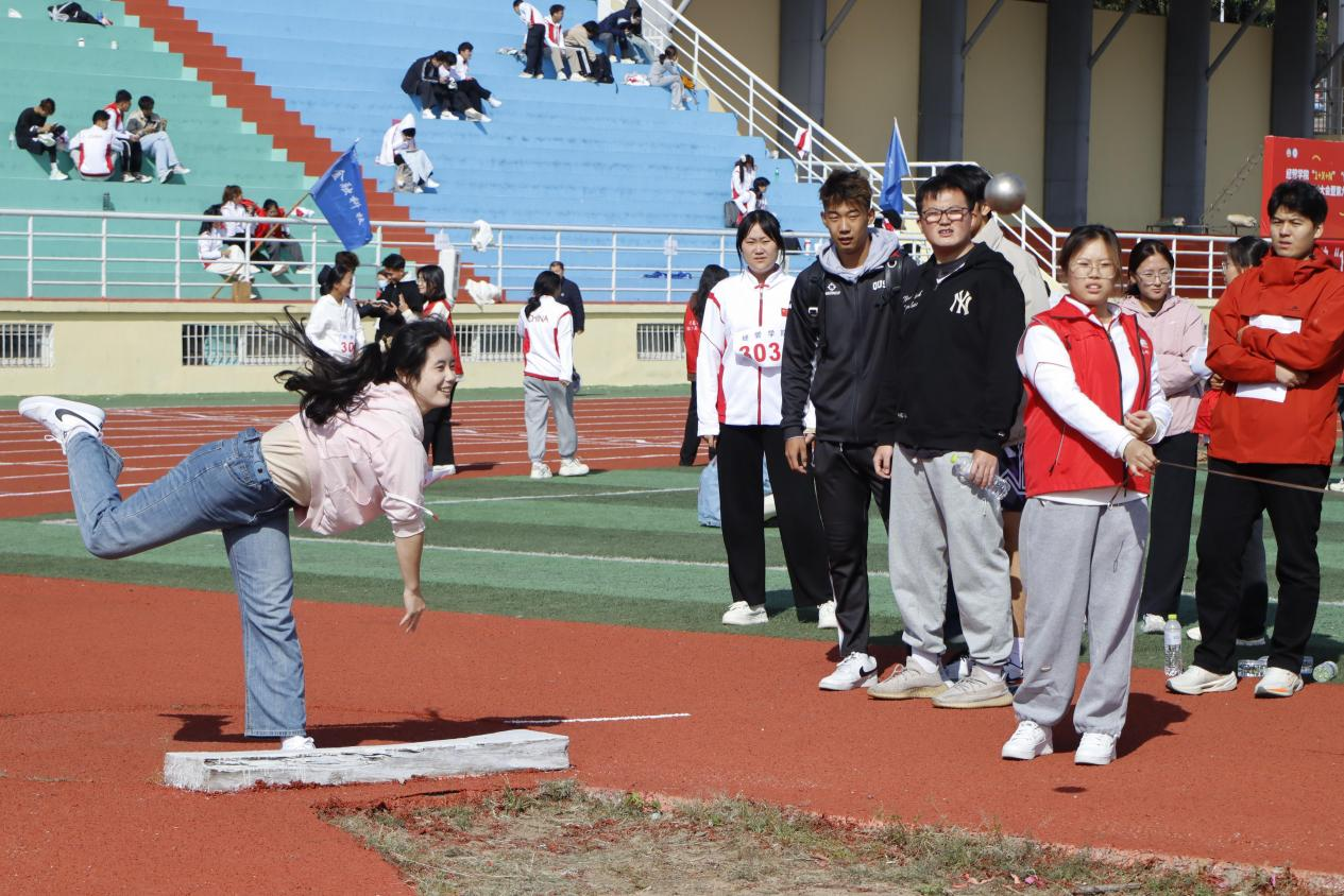 鸣笛完毕,运动会正式开始。短跑赛道上,运动员们如离弦之箭般冲出起跑线,全力以赴地冲向终点;长跑项目中,运动员们则凭借着坚韧的毅力和耐力,在赛道上不断挑战自我;田赛场中,跳远和铅球项目正如火如荼地进行着,一次次的跳跃、一次次的投掷……交织的弧线如同宣扬着不服输的五线谱,谱出运动员们的顽强与毅力,奏出经管学子的青春活力。
