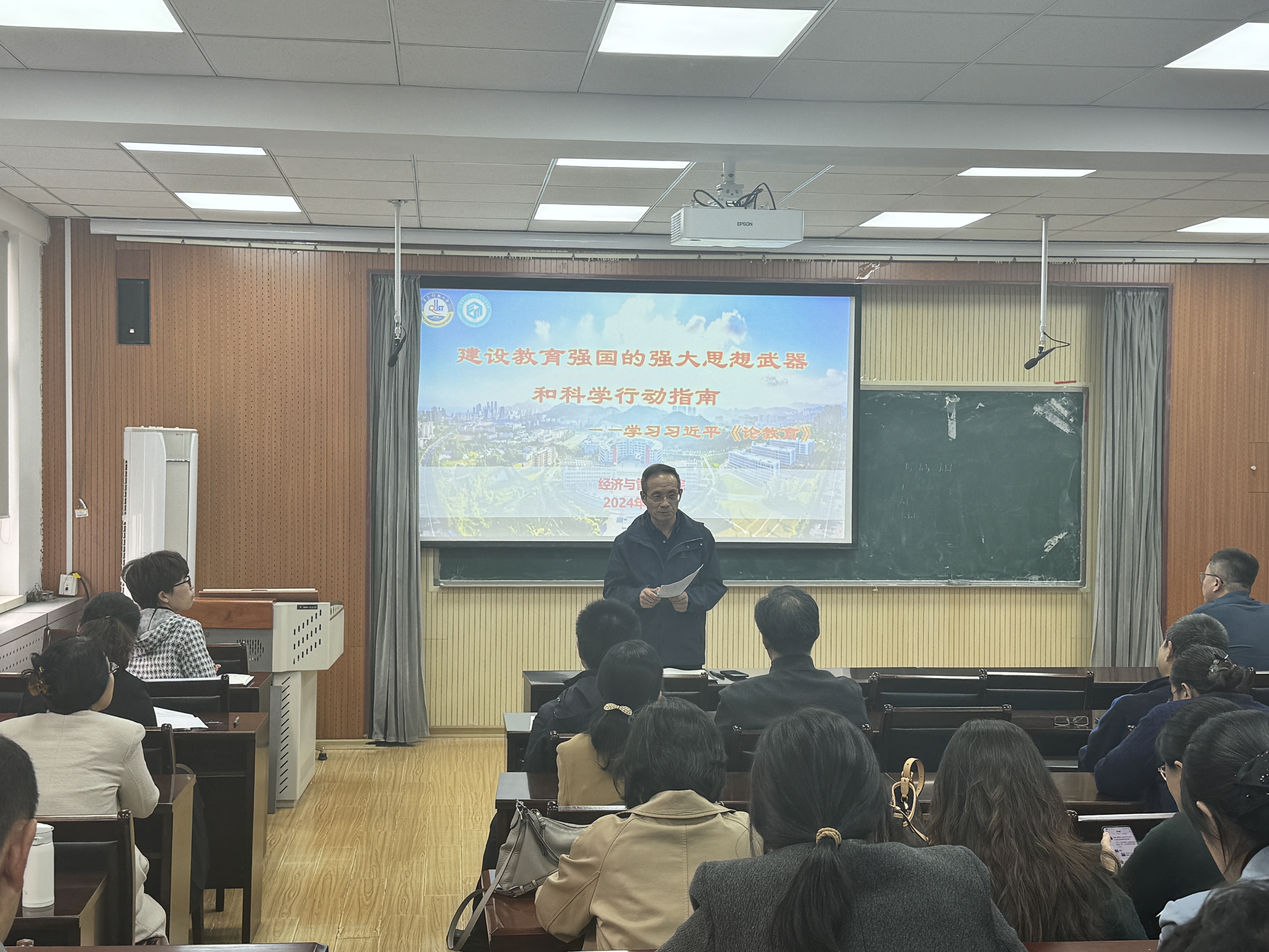 党委理论中心组(扩大)会议在经管楼419会议室举行。学院党委书记李勋来为全体教职工讲授《论教育》专题思政课。