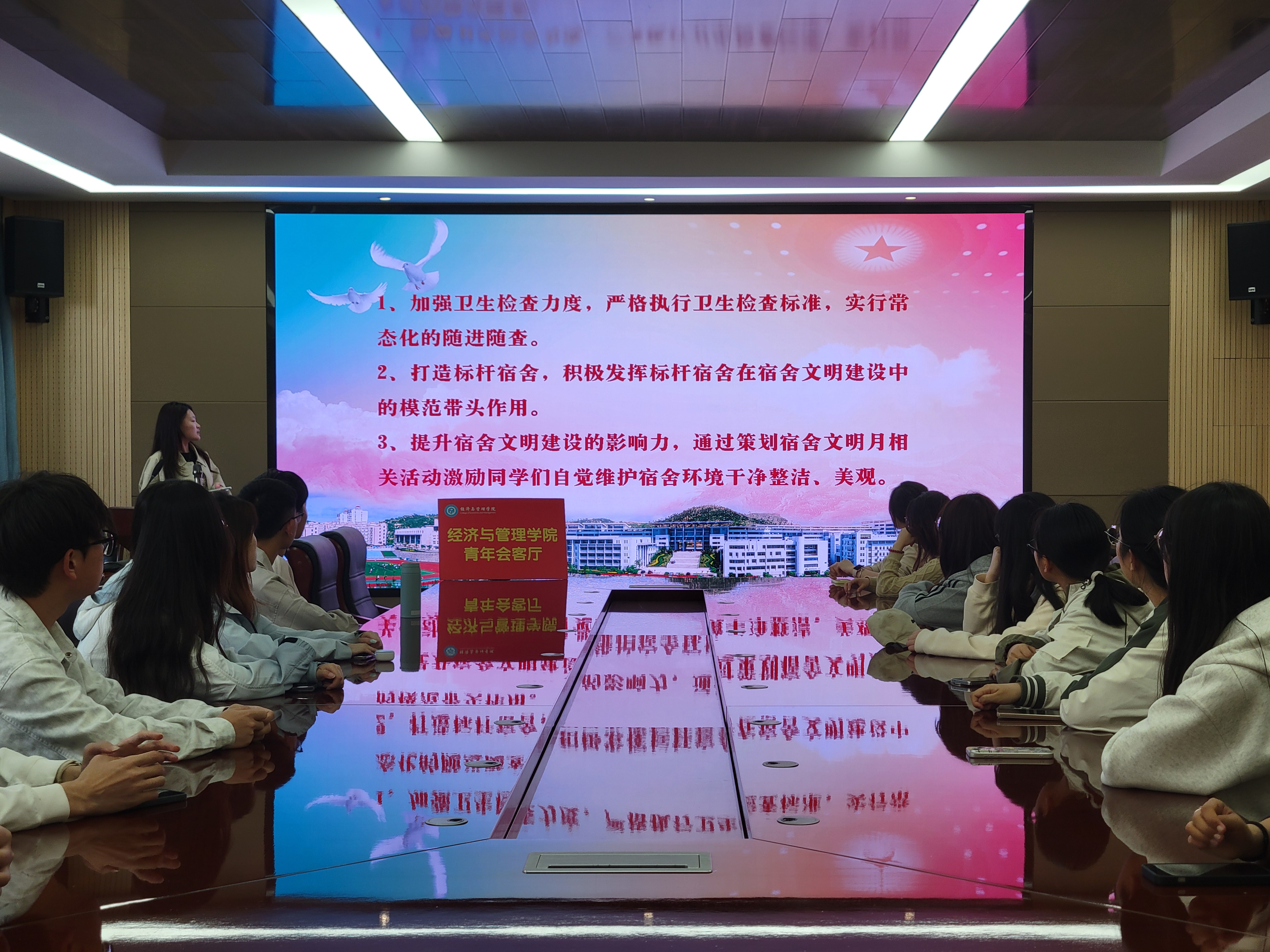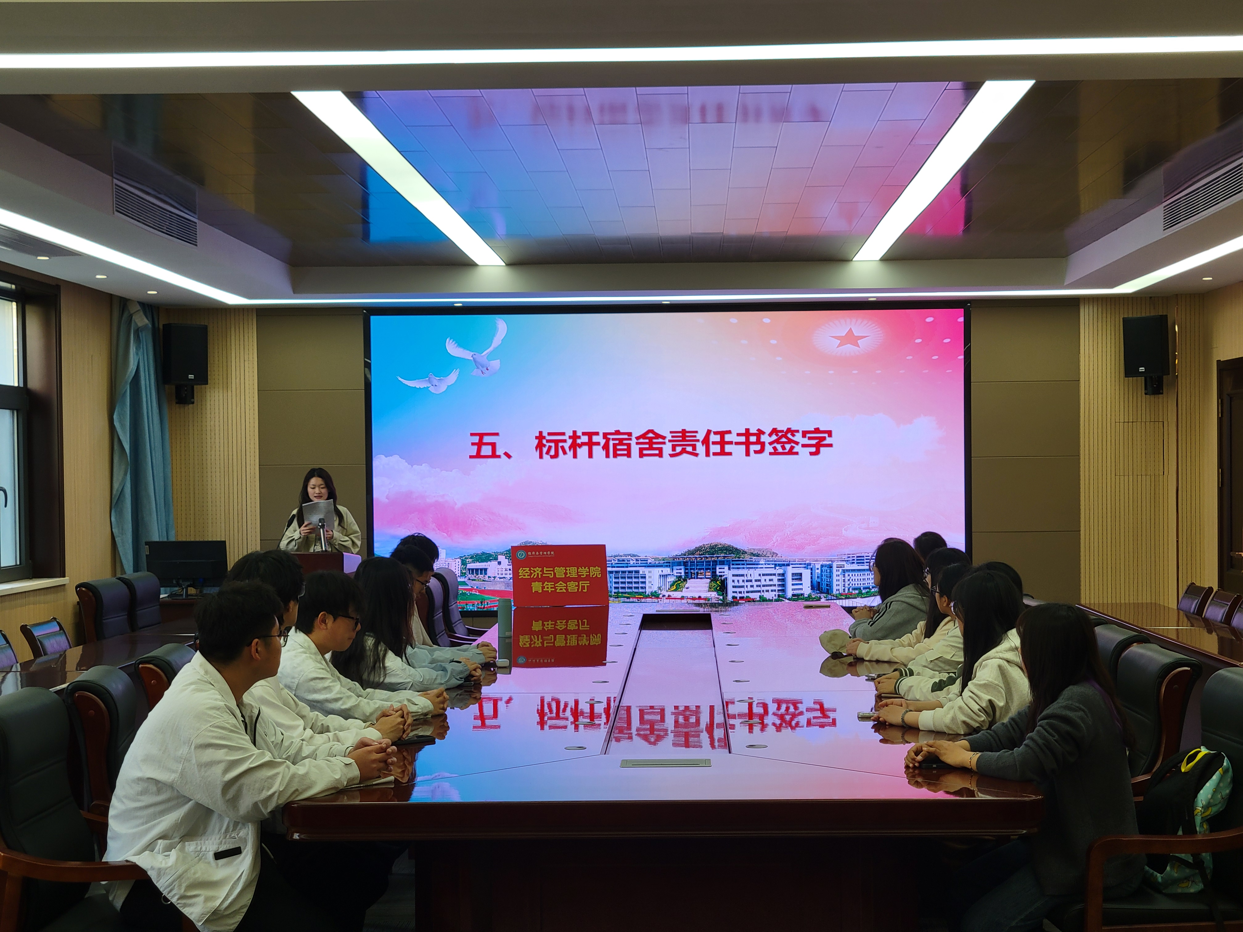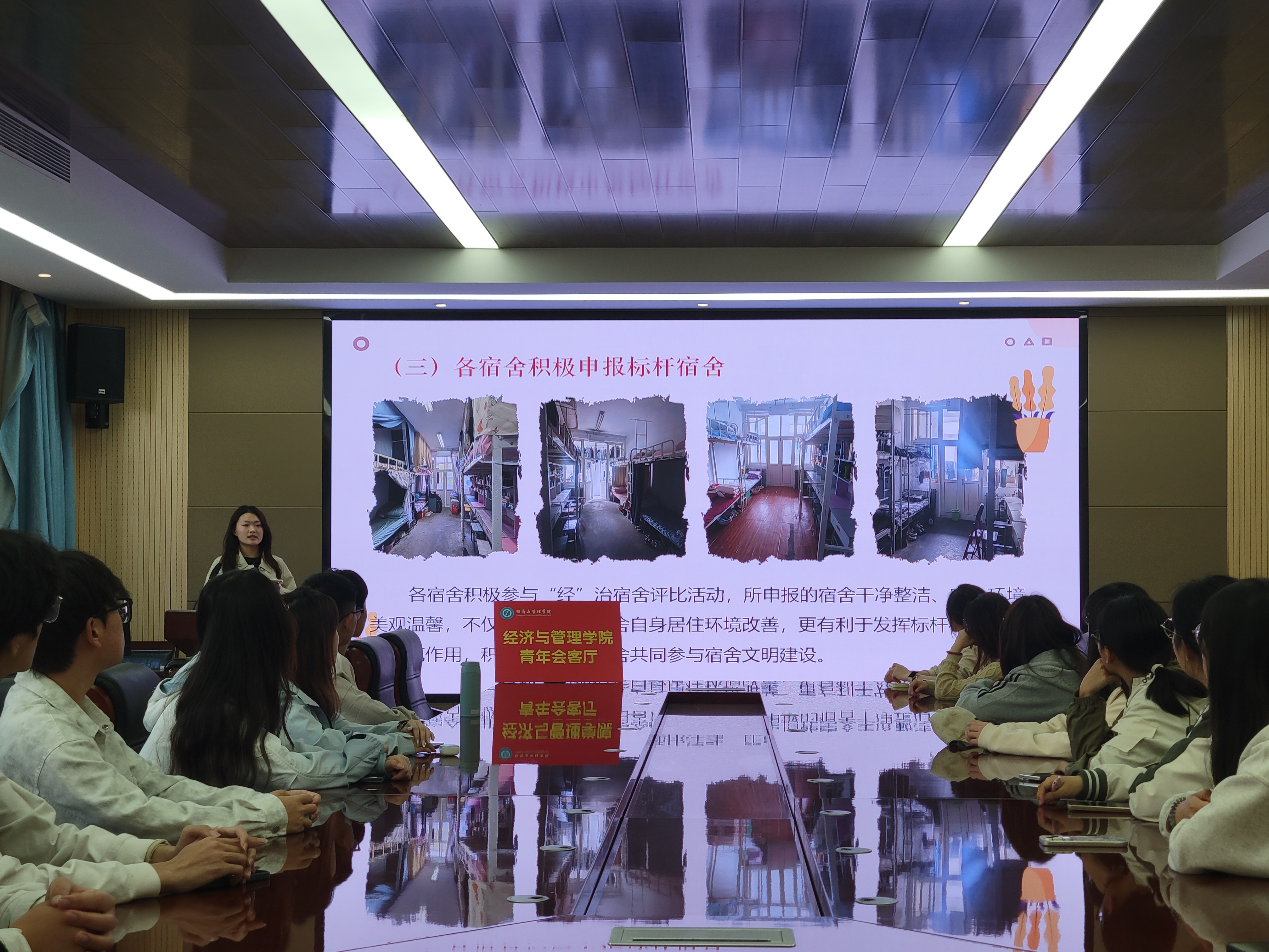 依托青年会客厅,于2025年4月22日下午在经管楼313举办文明宿舍建设推进会暨“经”治宿舍责任书签约仪式。本次活动邀请了各申报宿舍舍长与学生会部分负责人参加,共同为打造文明宿舍出谋划策、携手共进。