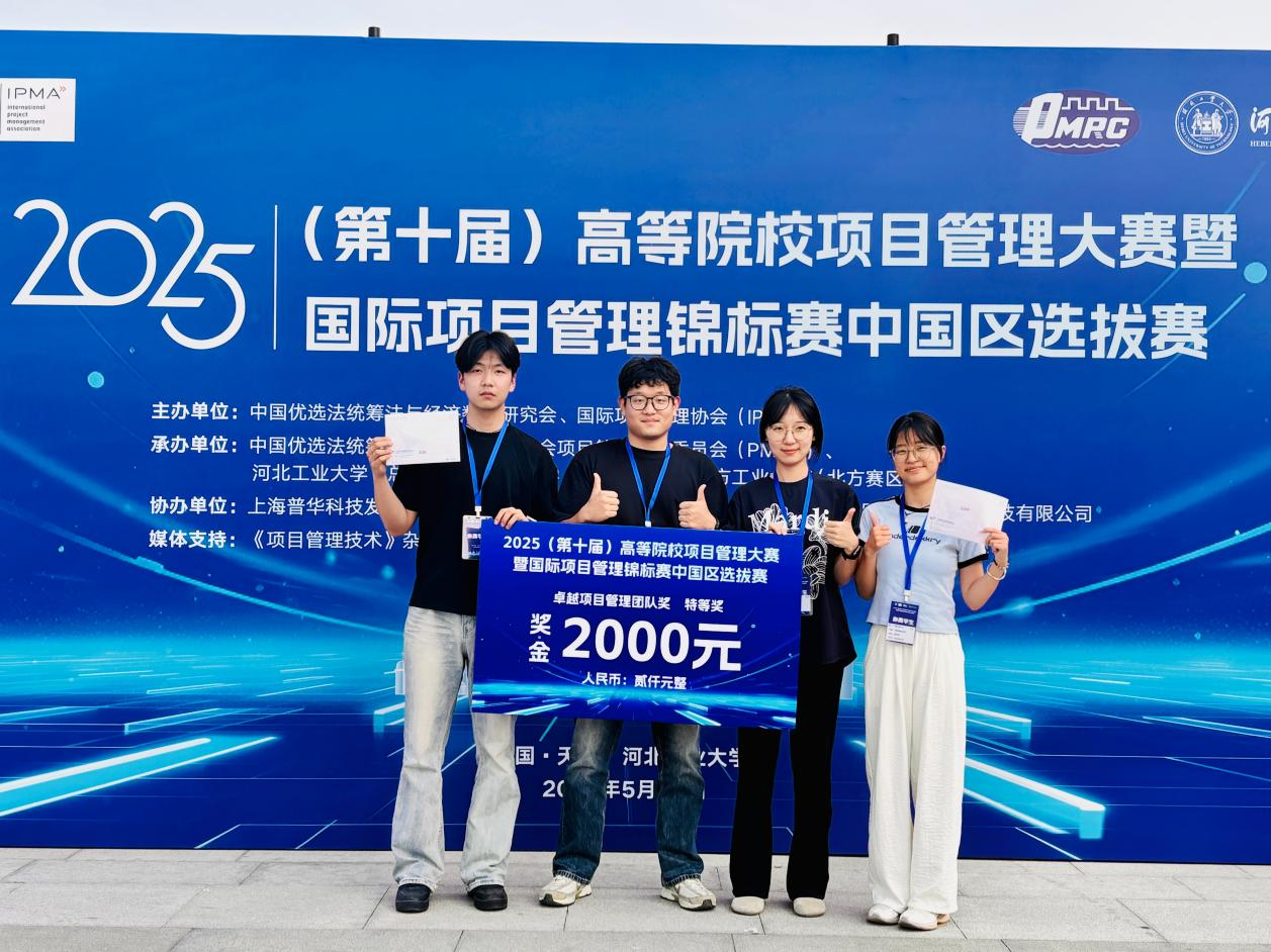 本次大赛学院派出2支本科生队伍,共8名同学,由董华和黄天赐两位老师指导带队。最终2支团队全部获团队特等奖;个人一等奖7项,二等奖1项,多名同学同时获得IPMP的D级证书;董华和黄天赐老师,均获得优秀指导老师称号。