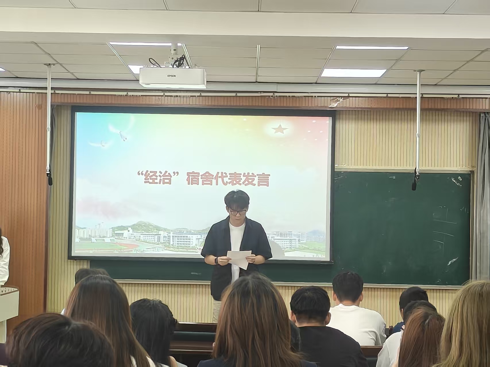于2025年6月10日在经管楼419开展“经治”宿舍表彰大会暨“1+2”宿舍结对帮扶仪式。24级各宿舍舍长、学生会部分成员参加。