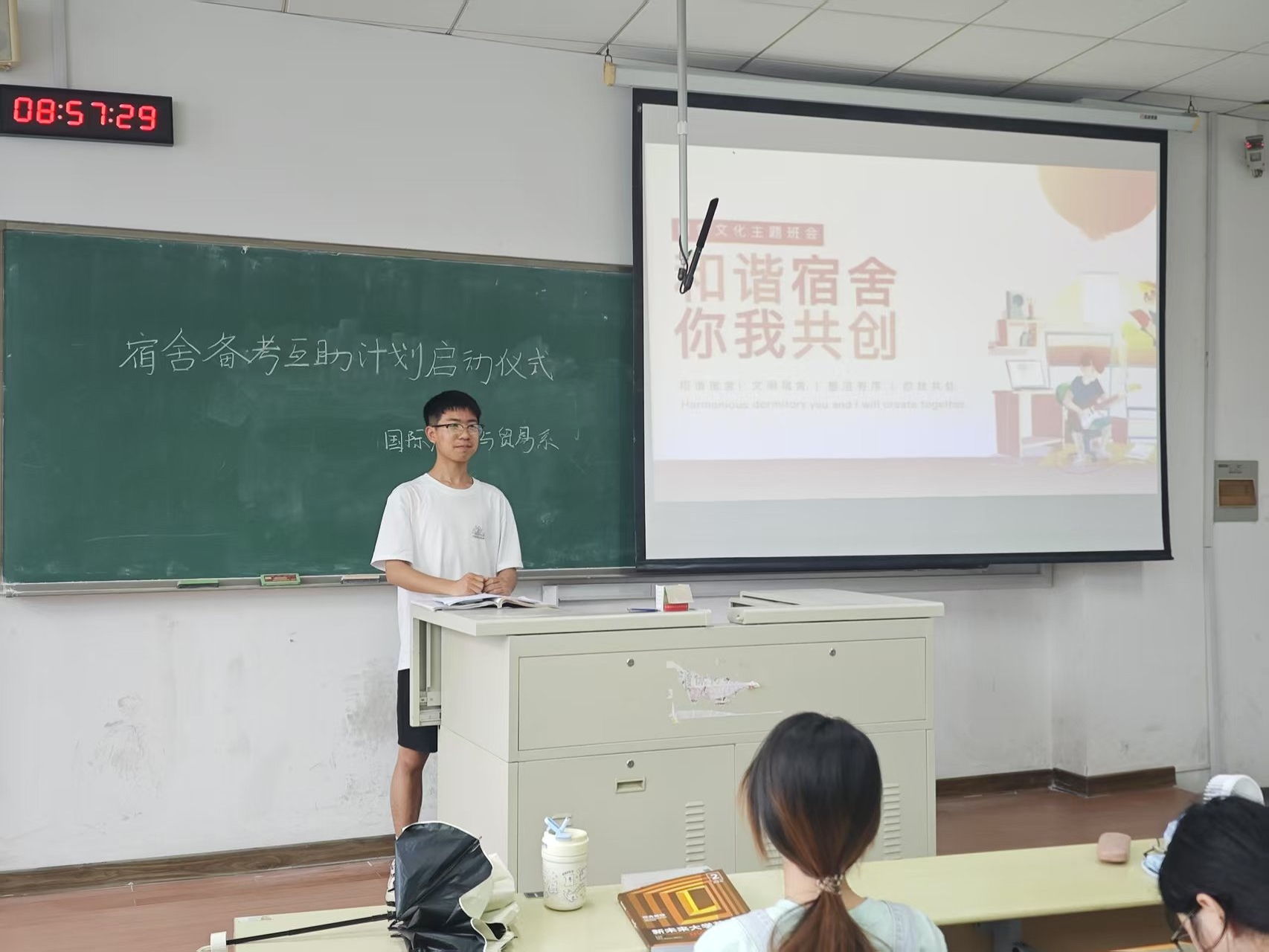 24级学生依托“宿舍备考互助计划”,以“1个优秀宿舍带动2个结对宿舍”的模式,开展难题解答、错题共享、模拟测试等活动,让学习互助延伸至生活单元。国贸专业采用朋辈帮扶的方式积极应考,班委合作梳理了课程重难点,形成复习提纲共享给班级同学;同时模拟出卷近5套,通过微信答疑和面对面讲解的方式,为基础薄弱的同学提供解题指导,确保备考“一个都不能少”。这充分激活了学生群体的自我组织能力,让榜样学生在分享中深化知识理解,也为后进学生提供了可复制的学习范本,让“比学赶超”从课堂延伸到生活场域,形成全域化的学习共同体。