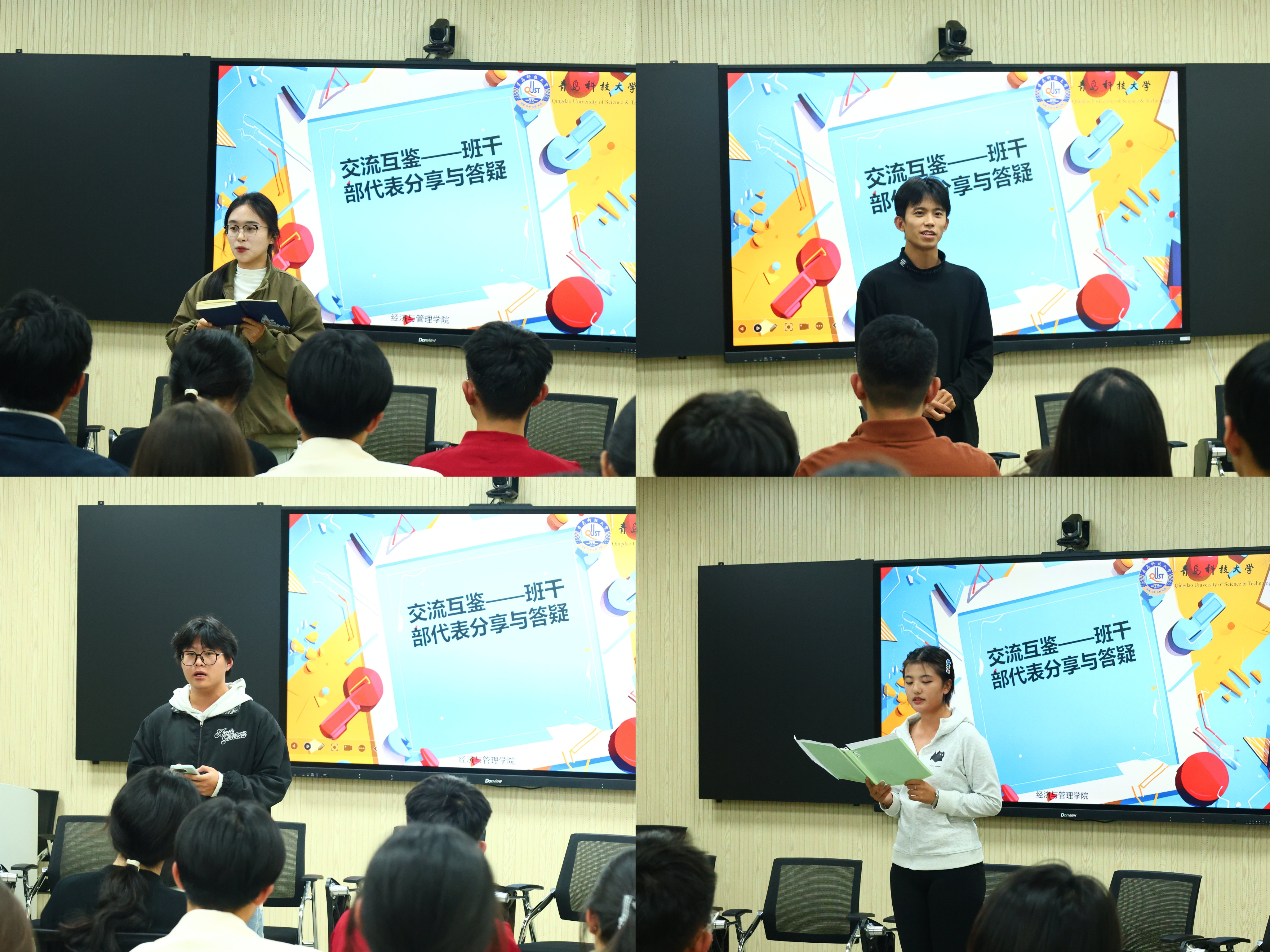 各班级学生骨干依次分享了入学以来班级成长心得、问题困惑、特色班级建设规划,各领跑学长结合多年学生工作和班级管理经验,就“AI时代下班级工作效率的智能化提升”、“如何调动集体活动参与度与积极性”、“如何打造坚强有力的班委会”、“个性化诉求的渠道开源”等热点问题进行交流解答。