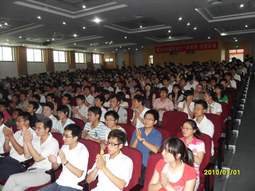 院长李立代表学院全体教师与在校生向563名2010届本、专科毕业生表达了衷心的祝贺和美好的祝愿!李立祝福同学们在未来的岁月里,能够顺利实现成功的渴望,创造更多财富,赢得更多尊重、做出更多社会奉献,为同学们自己、为父母,也为母校带来更多自豪和荣耀。他希望同学们尽快调整好自己的心态,完成从学生到员工、到市民的角色转变,希望同学们尽快与昨天的自我告别,直面人生的挑战,先做能干的事情,再做喜欢干的事情,找到自己安身立命、奉献社会的位置。他用两个小故事与同学们分享了对“激情与梦想”的理解。他说,我们不要讲如何实现你的梦想,而是要用梦想引领你的一生,用感恩、真诚的心态引领你的一生,用执着、乐观的态度引领你的一生。每个从大学这一神圣殿堂中走出来的学生都应怀有一个放飞理想的梦想,并用这个梦想引领自己的未来。他鼓励同学们发扬“敢为人先”的科大精神和“勇承重载”的橡胶品格,在各条战线上用智慧创造辉煌的人生。最后,他用汪国真的一首诗《热爱生命》结束了发言。李院长的激情演讲赢得了同学们长时间的热烈掌声。