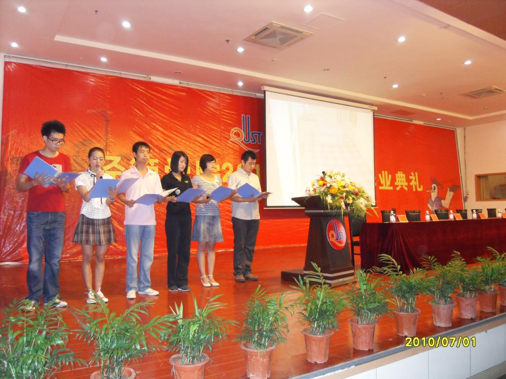2010届毕业生毕业典礼暨学位授予仪式在此隆重举行。校党委书记高青、团委书记刘传华、学院党政领导出席典礼并在主席台就座。各系主任、全体政治辅导员和2010届全体毕业生及家长代表参加了典礼。典礼由学院党总支副书记、副院长高继宏主持。