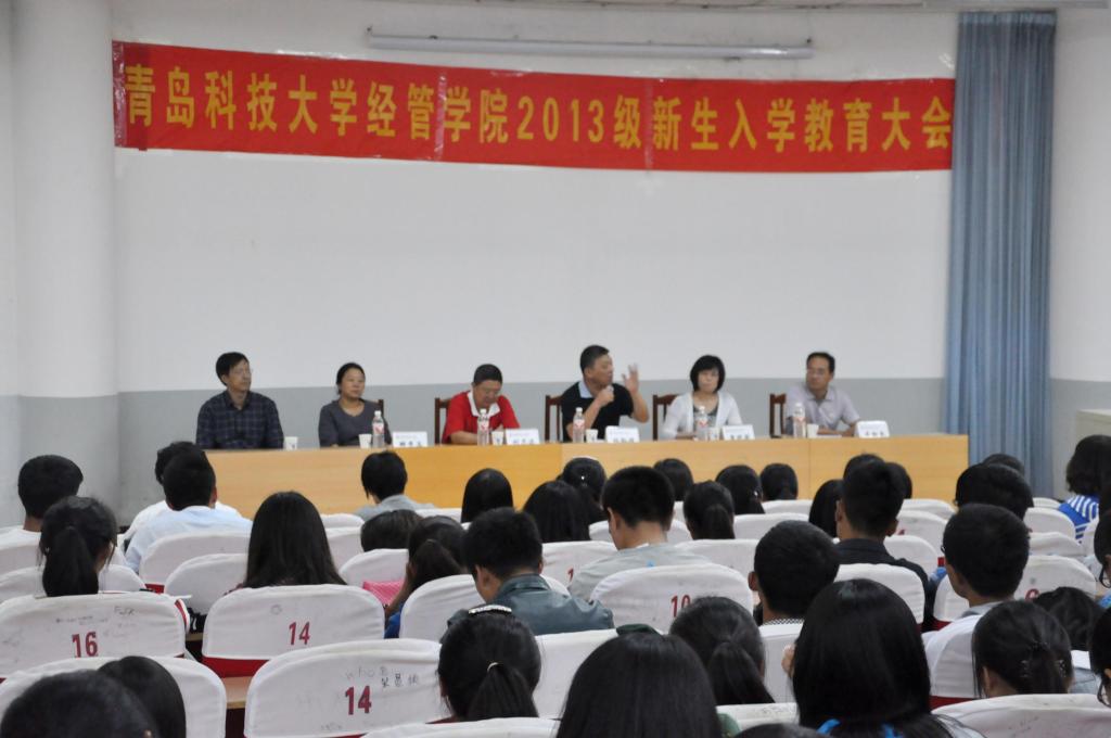 党总支书记杜裕禄、国际贸易系主任袁晓莉、市场营销系主任刘志远、财务会计系主任解秀玉、经管系辅导员陈永亮老师、柴建军老师、陈玉红老师及2013级经管系全体新生参加了本次大会,会议由经管系主任李勋来主持。