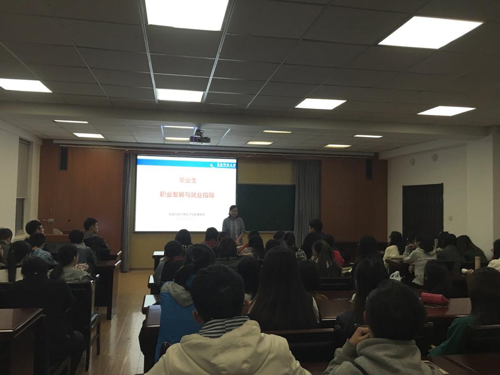 10月17日,xvideo 针对2013级毕业生开展了职业发展与就业指导讲座。讲座在经管楼419举行,xvideo 辅导员李雯雯、吴秋燕出席了本次讲座。