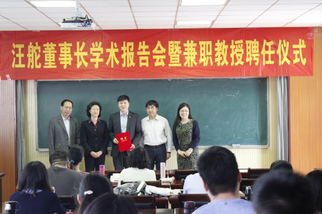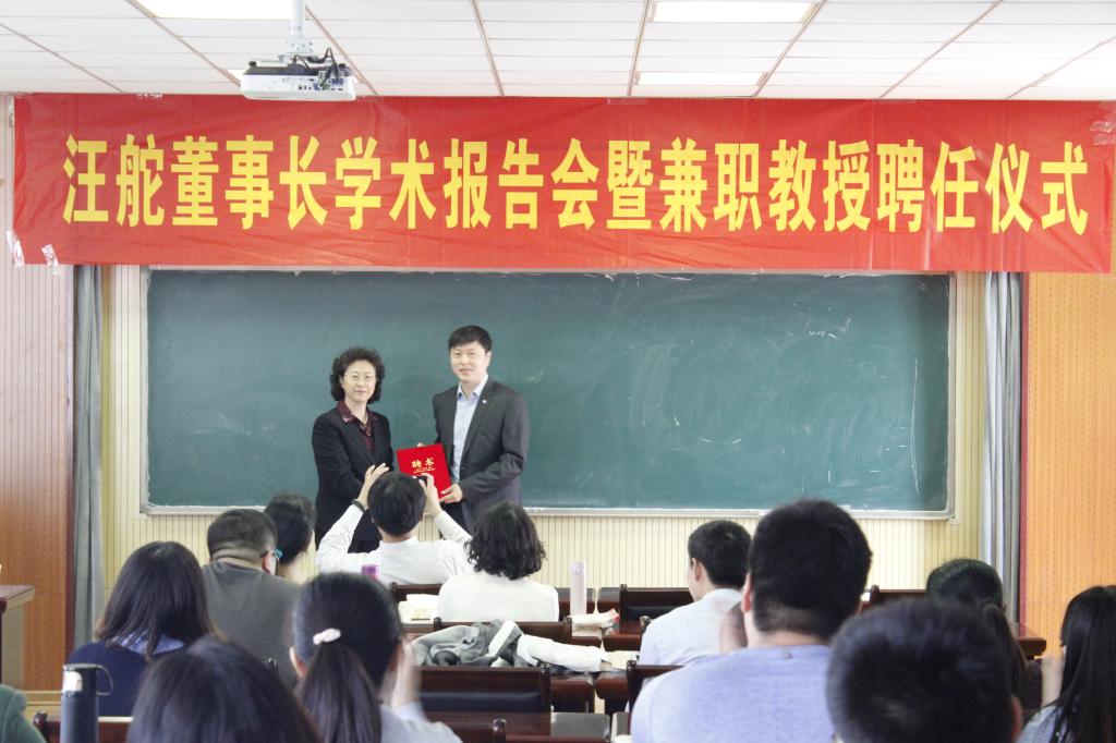 4月23日下午,汪舵董事长学术报告会暨兼职教授聘任仪式在经管楼505室举行。副校长张淑华出席仪式并为汪舵颁发聘书。仪式由xvideo