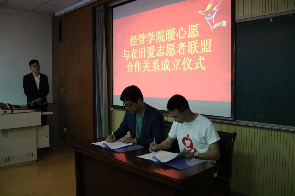 暖心愿与衣旧爱志愿者联盟合作关系成立仪式于经管楼504室成功举行。衣旧爱志愿者联盟会长王龙、xvideo