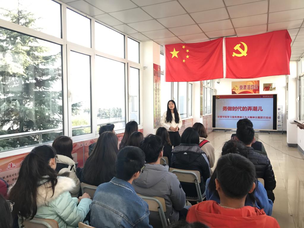 在2017年度取得的优异成绩,及对学生干部半学期以来的工作表现给予充分肯定,为学院发展起到的积极作用作出高度评价。随后,各班级负责人就开学以来的班风建设、班级管理、班委职能完善、志愿活动等方面分别做出工作总结。孙一君、夏淼认真听取同学们发言,并进行了深入交流与探讨。最后,夏淼老师从十九大精神出发,就“青年兴则国家兴,青年强则国家强”进行解读,希望学生干部坚定理想信念,脚踏实地,勇做时代的弄潮儿,在各方面引领风尚,树立典范,为学院及班级建设贡献力量。
