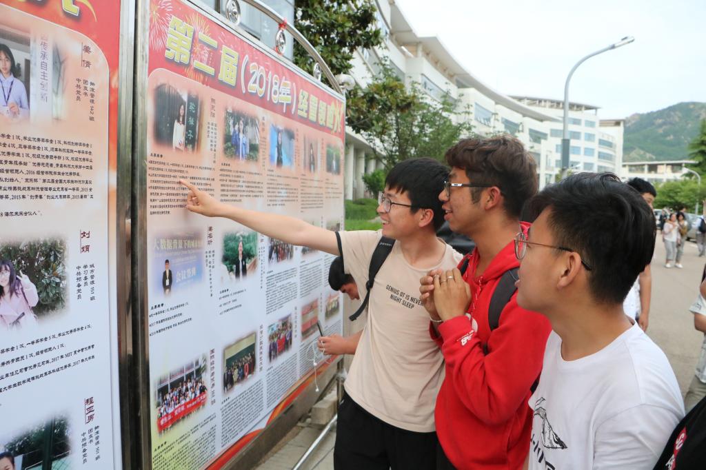 全体本科生、研究生,旨在寻找新生模范、学习标兵、创业之星、优秀毕业生及在科技创新、志愿服务、社会实践等领域的典型榜样。经过前期推荐、严格评选、网上投票和公示四个环节,共有22名优秀学子、8个优秀集体获得“第二届(2018年)经管领跑人”荣誉称号,评选活动产生了良好的带动效应,在学院掀起青春榜样风。5月24日上午,印有经管领跑人事迹简介的特色展板在弘毅楼前展览,吸引了过往师生纷纷驻足观看,收获了师生的一致好评。