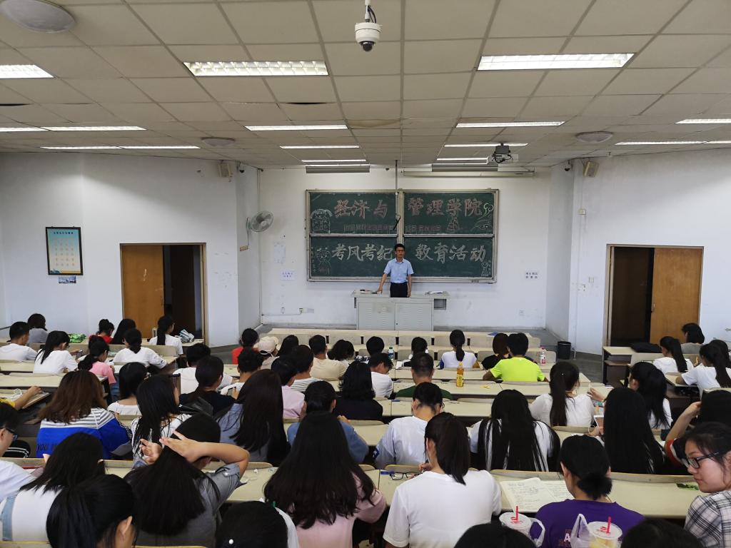 于弘毅楼E302室召开2017级年级大会暨考风考纪教育活动。会议由张显全老师主持,2017级全体学生参加本次会议。