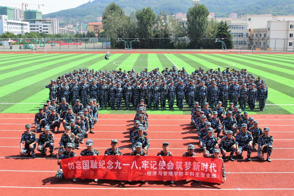 尚在军训的新生在学校操场摆出“九一八”字样, “勿忘国耻纪念九一八,牢记使命筑梦新时代”、“太平盛世要居安思危,和平岁月需警钟长鸣”的标语也出现在同学们的队伍里,大家屏息凝神,现场庄严肃穆。新生们表示,87年后,再次走进历史长廊,惨痛的历史和事实提醒着我们勿忘国耻,奋发图强,积极作为,勇于担当,振我中华。