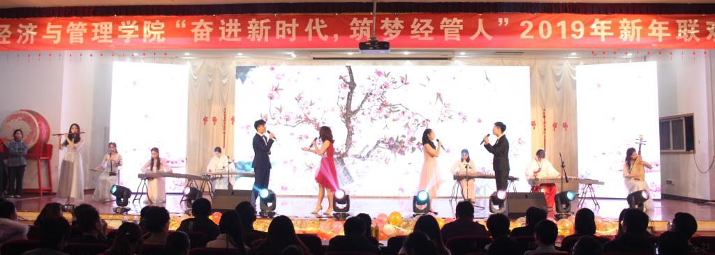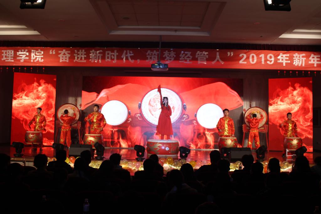 “奋进新时代,筑梦经管人”2019年新年联欢晚会于崂山校区第二报告厅成功举行。校党委副书记张元利、组织部部长聂法良、统战部部长陈洪宗、学生处处长陈刚、保卫处处长王伟、后勤处处长郭永、工会副主席徐瑞成、团委副书记张玉、宣传部副部长李鲲鹏、学院领导、全体老师、各兄弟学院老师、学生会主席及18级全体学生共计800余人共同观看了晚会。
