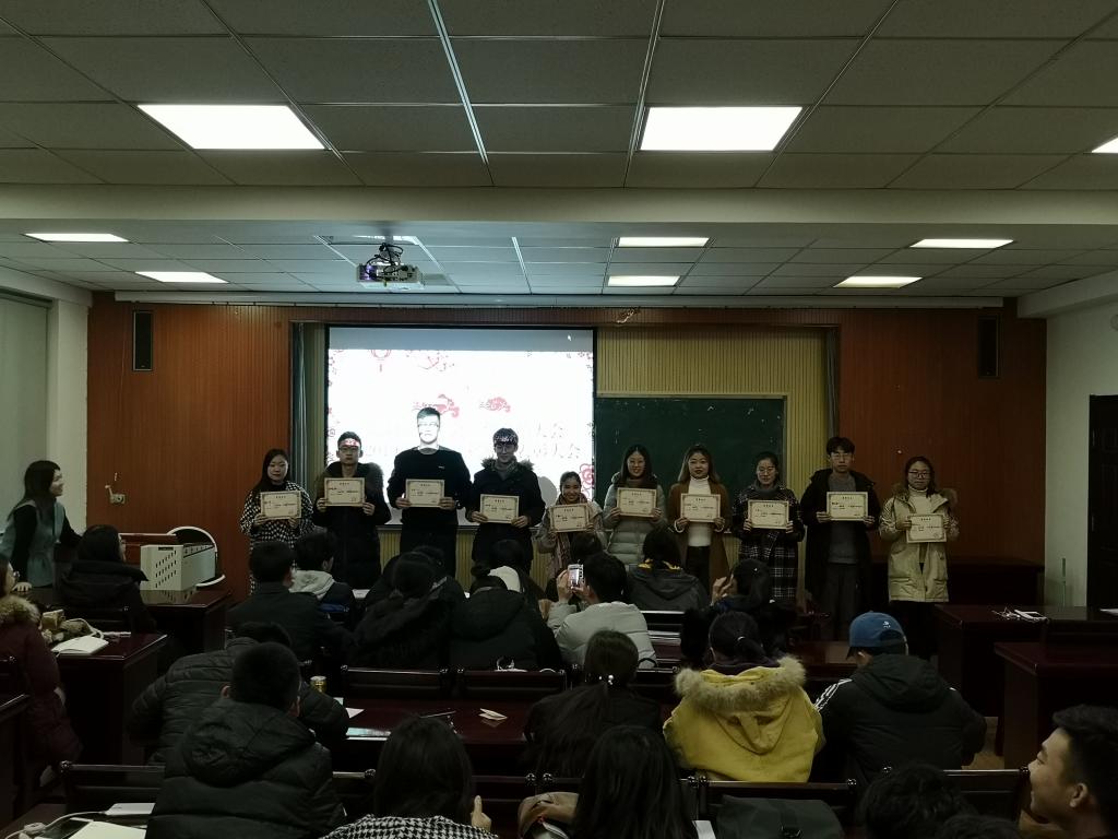 学生会主席郑奇对本次新年晚会及年度工作做了总结,她提出本学期的学生工作十分圆满,各项赛事成绩都有突破,各项活动组织都有进步,每位主席、部长、干事都完成了角色转换,承担起了自己的工作责任,从“想做好”到“做得好”,看到了每个人的成长。希望学生会全体成员继续发扬奋斗、传承的优良传统,凝心聚力,坚定信心,再接再厉,再创佳绩。随后,各部门分管主席、部长依次总结本学期部门工作。最后老师和主席们为晚会演出人员代表颁发学院2018年度文体优秀个人荣誉证书并合影留念。