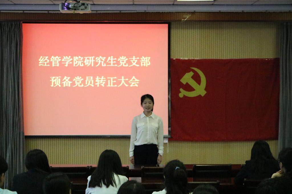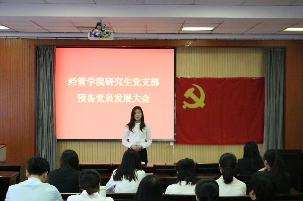研究生党支部在经管419召开了支部会议暨“不忘初心 牢记使命”主题教育。本次支部会议包括发展对象推优入党、预备党员转正、研究生支部支委换届选举及“不忘初心、牢记使命”为主题教育四项内容。会议由xvideo