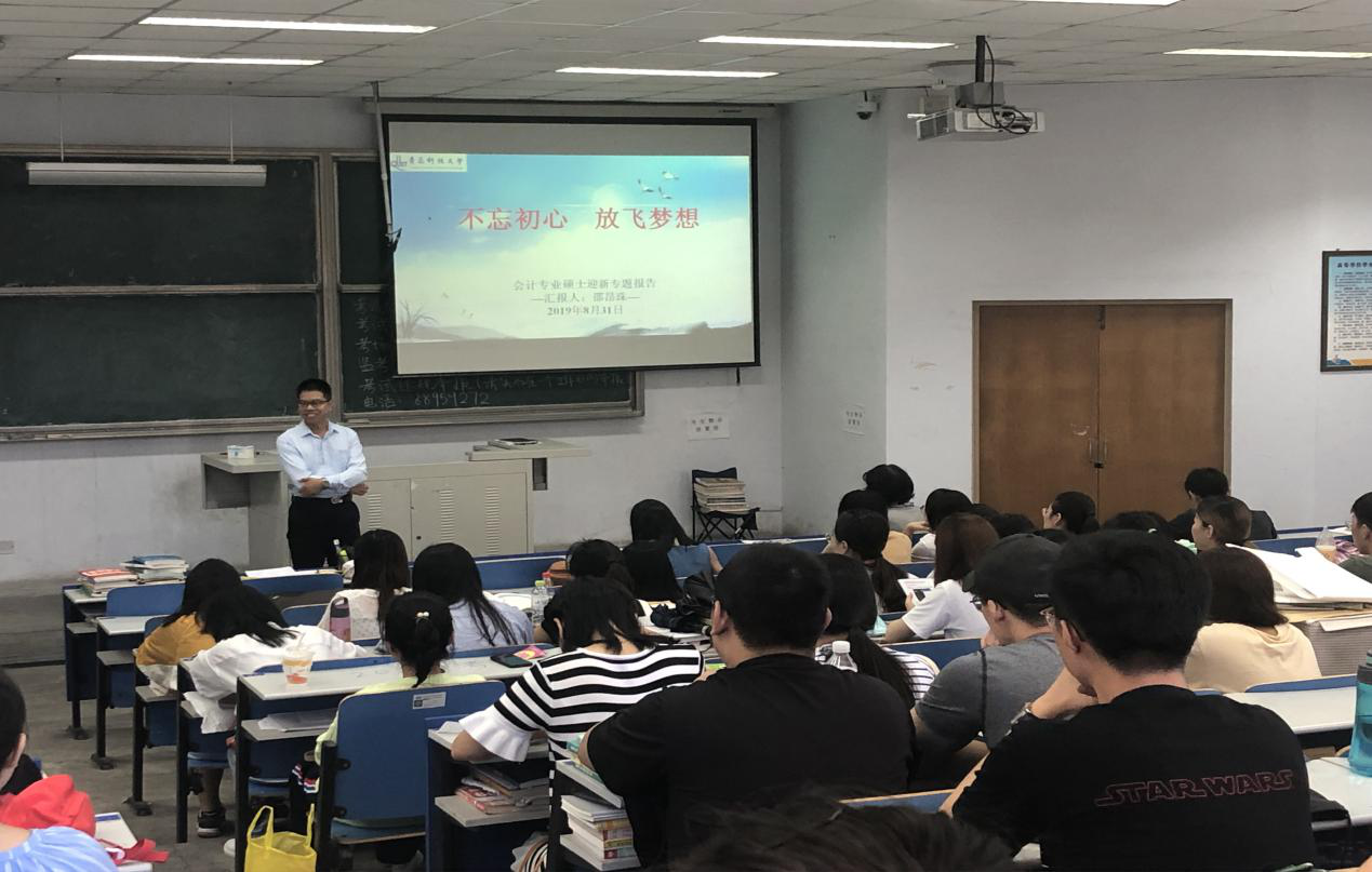 于8月31日上午9点特邀校外导师高级会计师邵昂珠老师为全体同学进行了“不忘初心 放飞梦想”入学教育主题讲座。邵老师首先肯定了会计的就业前景,并对会计师的人生分阶段进行了规划。随后,对CPA注册税务师证、证券从业资格证、ACCA等证书进行了详细的介绍。最后,邵老师按不同省份、不同工作岗位进行薪资对比对会计相关的职业发展进行了数据化分析,帮助学生更理智地了解行业发展水平,明确树立未来目标。此次入学教育讲座内容丰富,意义重大,为新生制定奋斗目标并合理安排三年研究生学习生活奠定了基础。