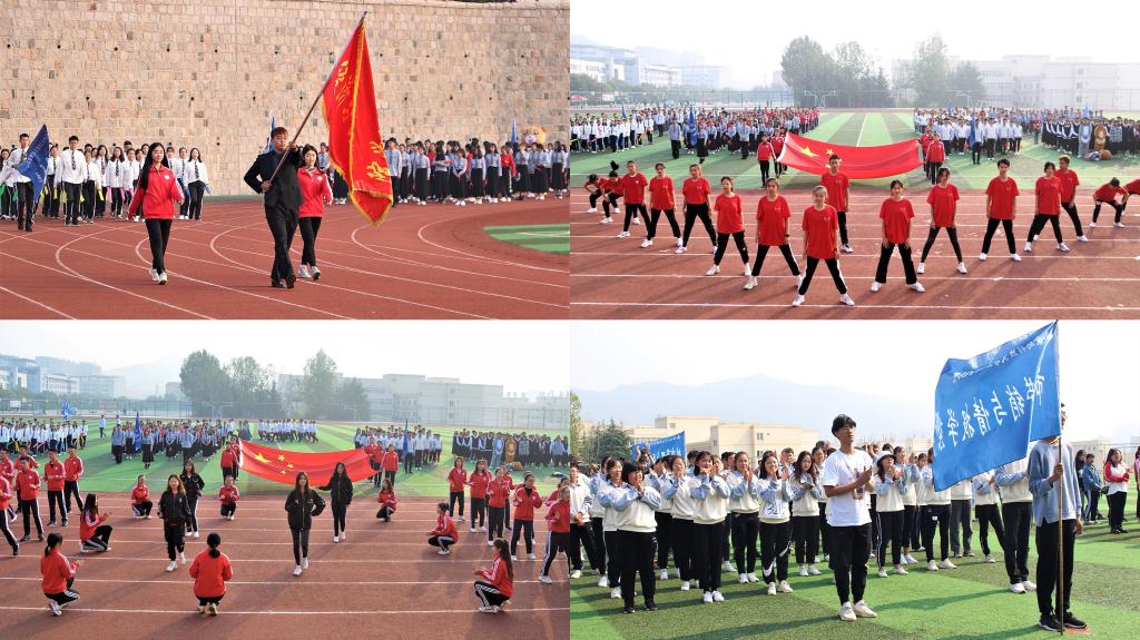 第四届学生运动会暨2019大学生科技文化艺术体育节开幕式在学校崂山校区南苑运动场拉开帷幕。此次运动会以“春华秋实七十载,厚积薄发展‘经’彩”为主题,分为田赛、径赛以及趣味赛三个部分。