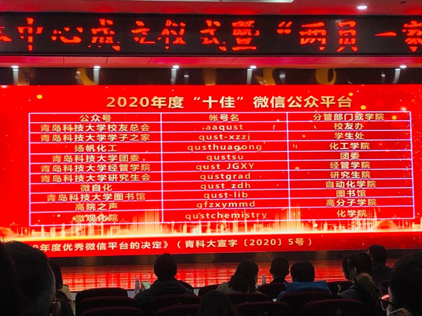 党委宣传部对2020年度优秀微信公众平台进行表彰,“xvideo
