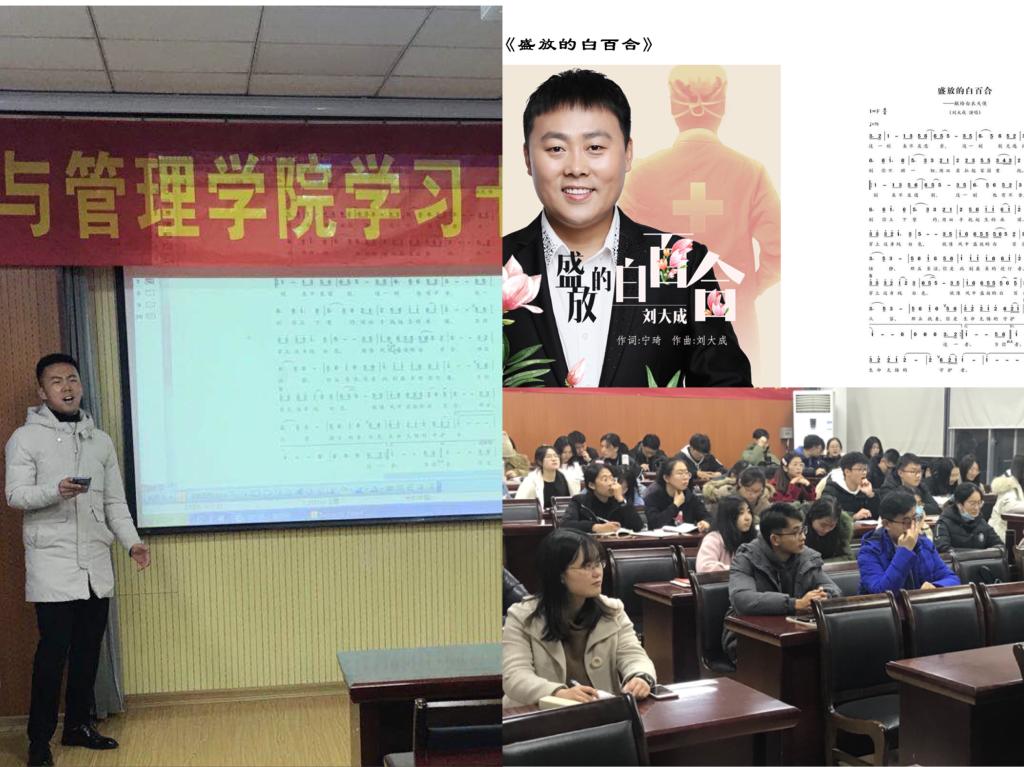 疫情期间,社会各界音乐工作者用行动积极抗疫,例如群星演唱的歌曲《相信未来》,以及文艺界抗击疫情主题MV——《坚信爱会赢》,以多样的形式、动人的题材、丰富的情感拉近人与人的距离,从精神层面缓解惶恐压抑的氛围,更以润物无声的艺术形式发挥了音乐在“战疫”中的社会影响力。随后,高守朋激情演唱《盛放的白百合》一曲,极大的鼓舞了在场学生,用音乐传递了内在的思想力量。他借用罗曼罗兰的一句名言:“世上只有一种真正的英雄主义,那就是认清生活的真相之后仍然热爱生活”寄语广大学员。另外,他结合学习强国,向大家传递了总书记对广大大学生提出的希望,要求当代大学生更要坚定信仰、淬炼意志、砥砺践行。