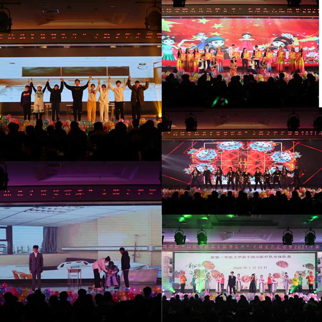 少数民族艺术团带来的舞蹈《一个民族都不能少》,以脱贫攻坚为背景,以新疆籍学生求学为主线,以点带面反映了各族人民在党的领导下如期实现脱贫,全面建成小康社会的美好生活画卷;抗疫公益歌曲《山河无恙在我胸》以深情的演唱来致敬我们英雄的祖国,英雄的时代,英雄的人民,将晚会气氛推向了高潮;小品《考试请注意》将学风建设元素融于节目当中,以幽默诙谐的表达方式给学子们深刻的教育与启迪;情景表演唱《一荤一素》歌词中饱含了对母亲的思念,动人的平凡与朴素直抵我们心底的柔软,感恩母爱的细腻与温柔;研究生代表迸发青春与活力,以一首爵士舞《锦绣芳华》彰显了xvideo