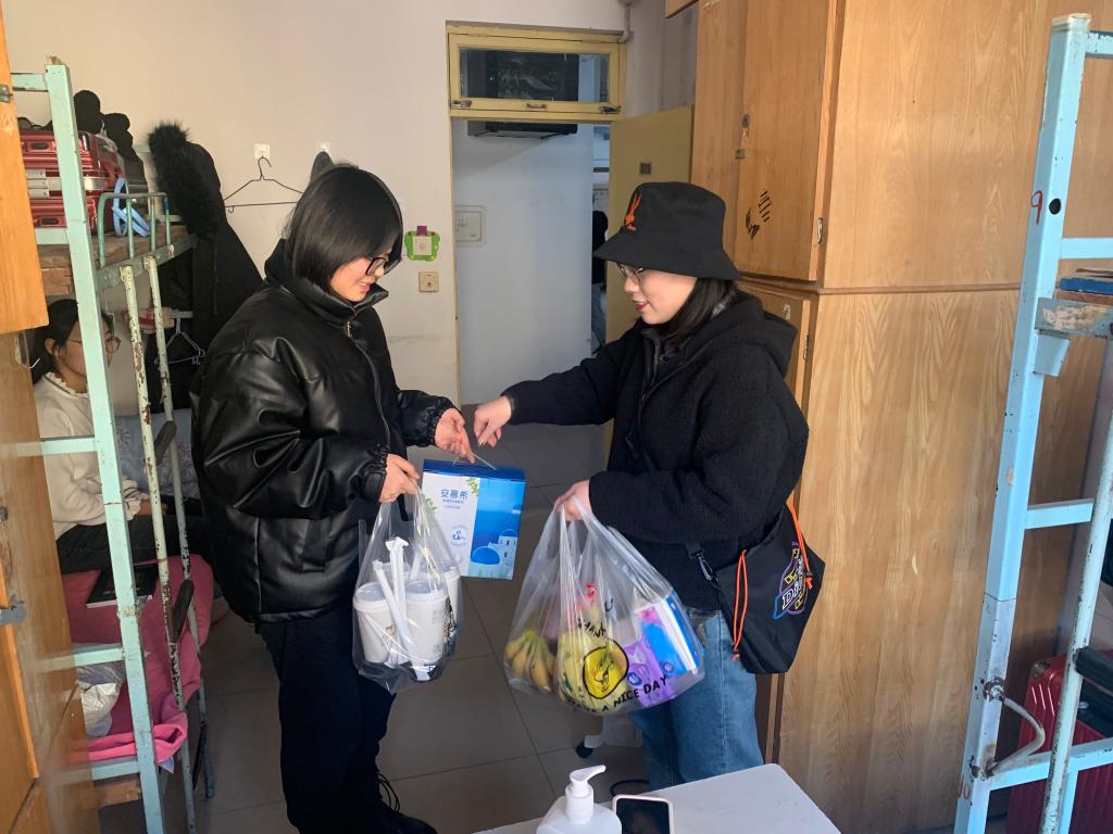 于会后走访看望了因疫情留校学生,为学生送去学院的关怀与温暖,并补给了一些日常必需品和食物。鼓励学生在校安心学习,期盼家乡早日战胜疫情,学生可以平安返乡,同时,针对宿舍卫生、违规电器、违规物品及防火、防盗等细节排查安全隐患,嘱托学生每日按时上报健康信息,与辅导员、家长保持联系,有特殊情况及时和学校学院反馈。2020级工商管理专业的留校学生李雪对学校学院的关心和祝福深表感谢,她表示,宿舍的四个小姐妹分别来自不同学院、不同省份,大家互相作伴,感到非常亲切。一定会牢记老师们的嘱托,充分利用在校时间,合理规划自己的学习和生活,和老师、同学们在学校共同度过这段难忘而充满意义的时光。
