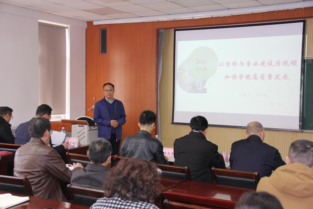 在学科建设方面所取成就,并对今后建设方向及重点提出要求:一是要明确目标,明方向。二是要夯实举措,直面学院学科发展短板,以优化资源配置等举措,突出解决学院主要问题。三是要分解任务,紧跟学校基于学科建设的教师岗位聘任考核管理思路,严格落实聘期动态考核任务。四是要突出重点,深度部署学院中心工作,持续凝练学科建设特色。五是要创新体制机制,持续完善奖励制度及考核制度,凝聚全院合力。六是要明确时间,把握关键时间节点,分门别类分解任务。