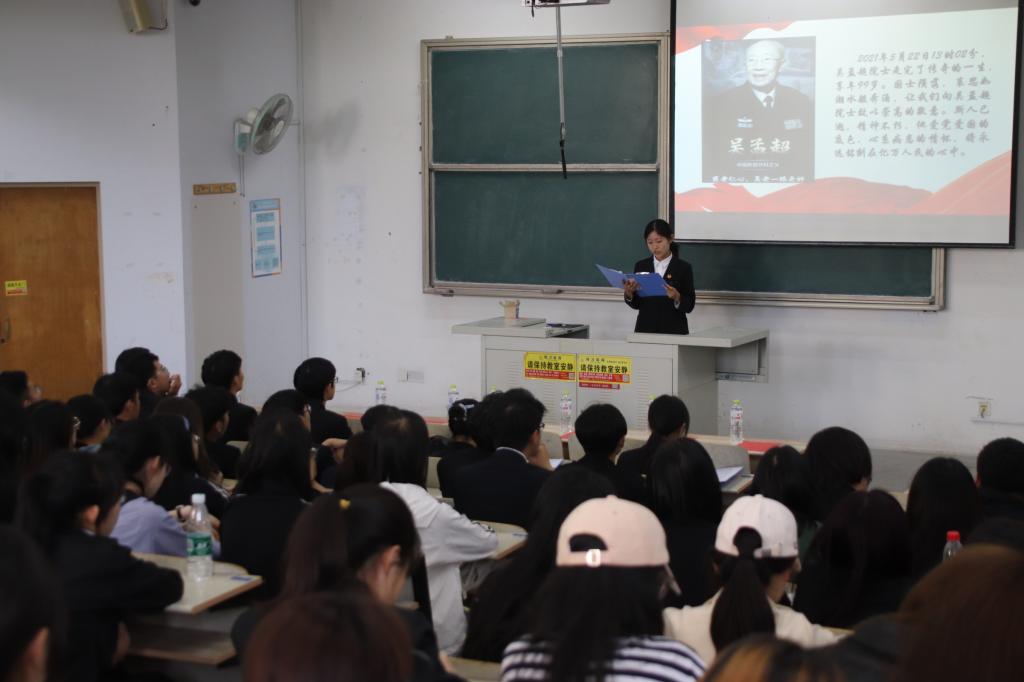 活动中,黄安琪、王怡霖两位同学分别进行了袁隆平院士与吴孟超院士事迹的宣讲,袁隆平院士将一生奉献给杂交水稻事业,吴孟超院士年过九旬依然坚守在手术台上。两位院士的事迹令在场的同学感动而敬佩,纷纷抒发自己的感想,同学们表示:应当向两位院士学习,传承爱国为民、刻苦钻研、全心奉献的精神,不负期望,勇担使命,为国家发展贡献力量。最后,付凯老师为大家播放了袁隆平院士作词的《我有一个梦》,同学们齐声跟唱,以此表达对两位院士的哀思。