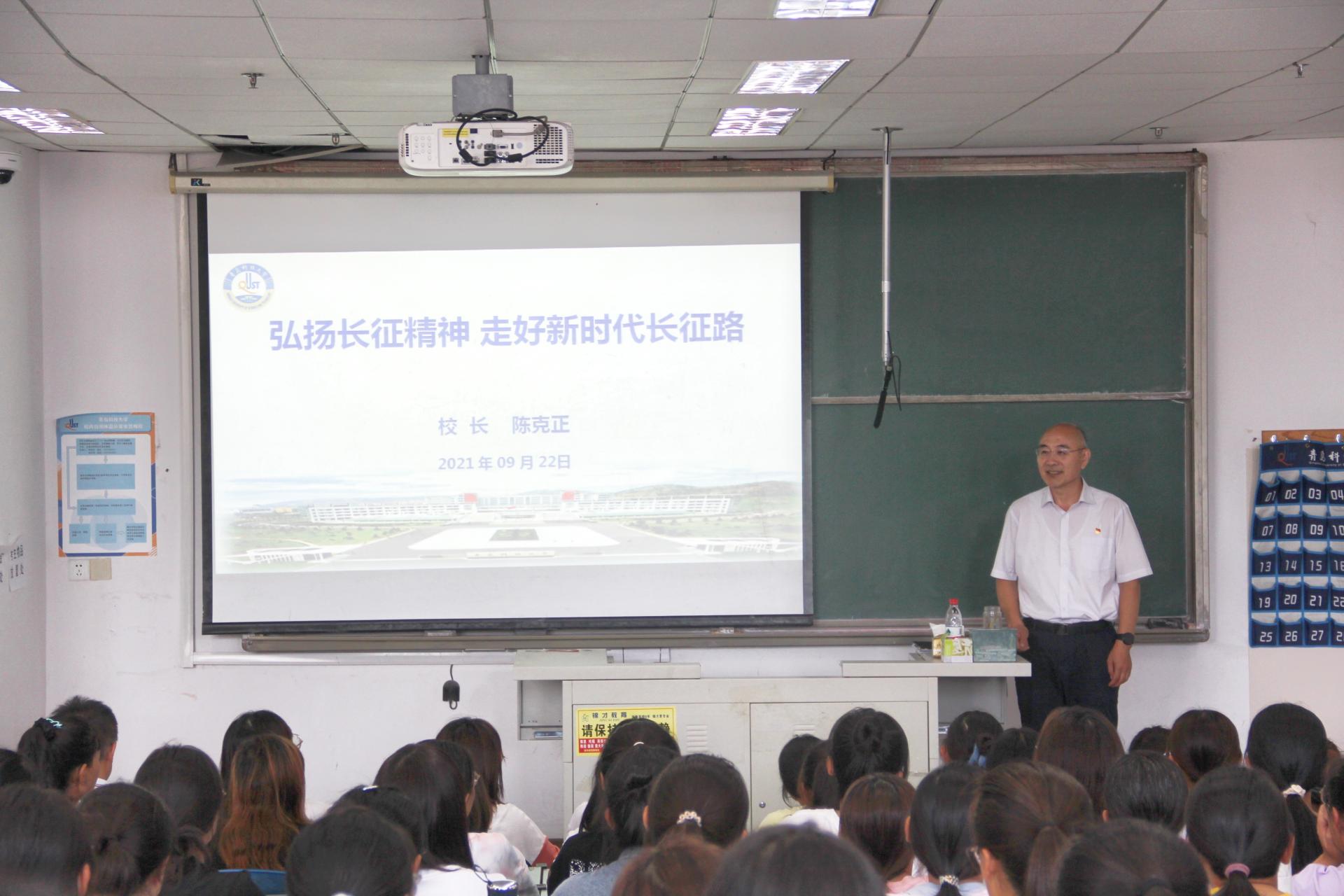 9月22日下午,校长陈克正走进学生课堂,以“弘扬长征精神 走好新时代长征路”为主题,为xvideo